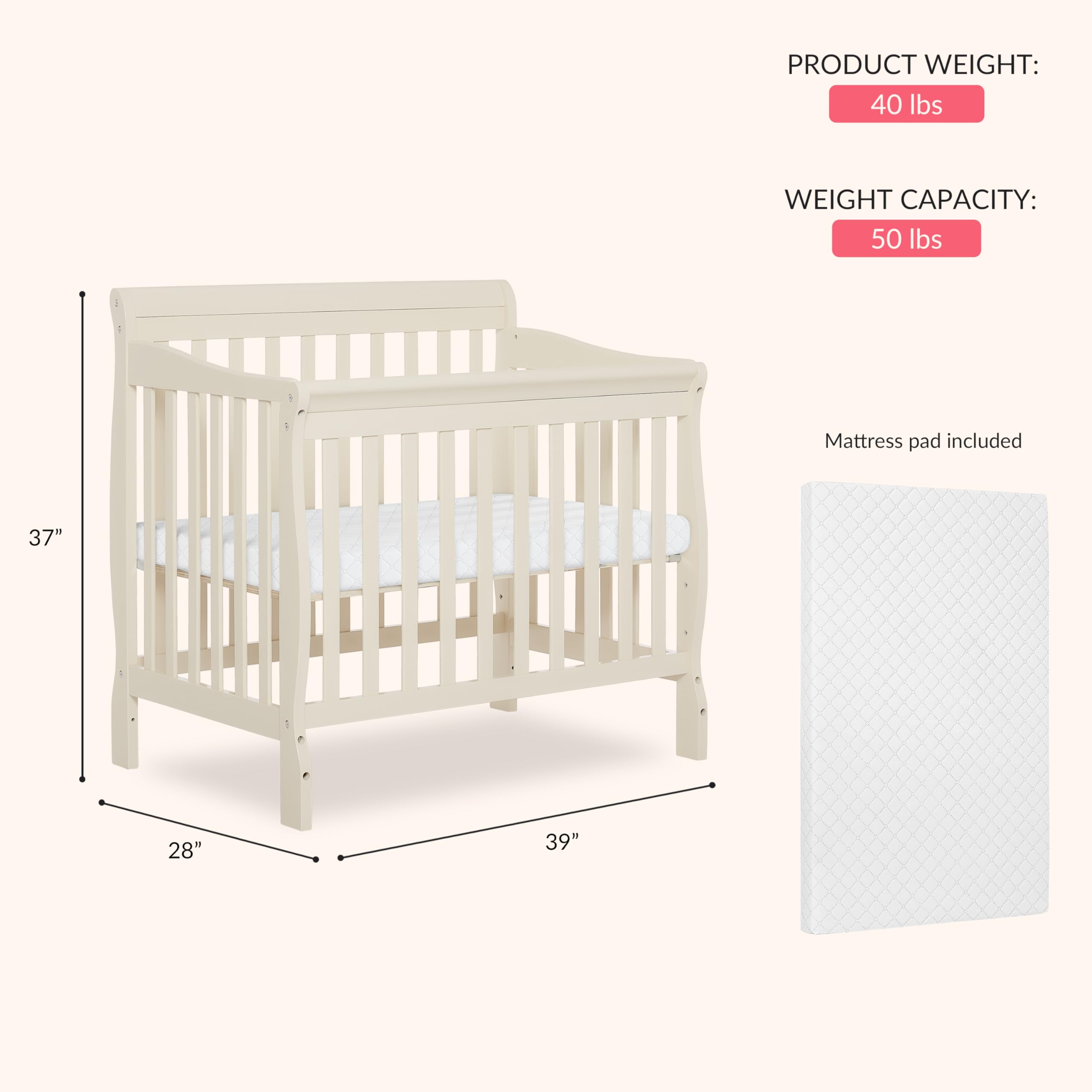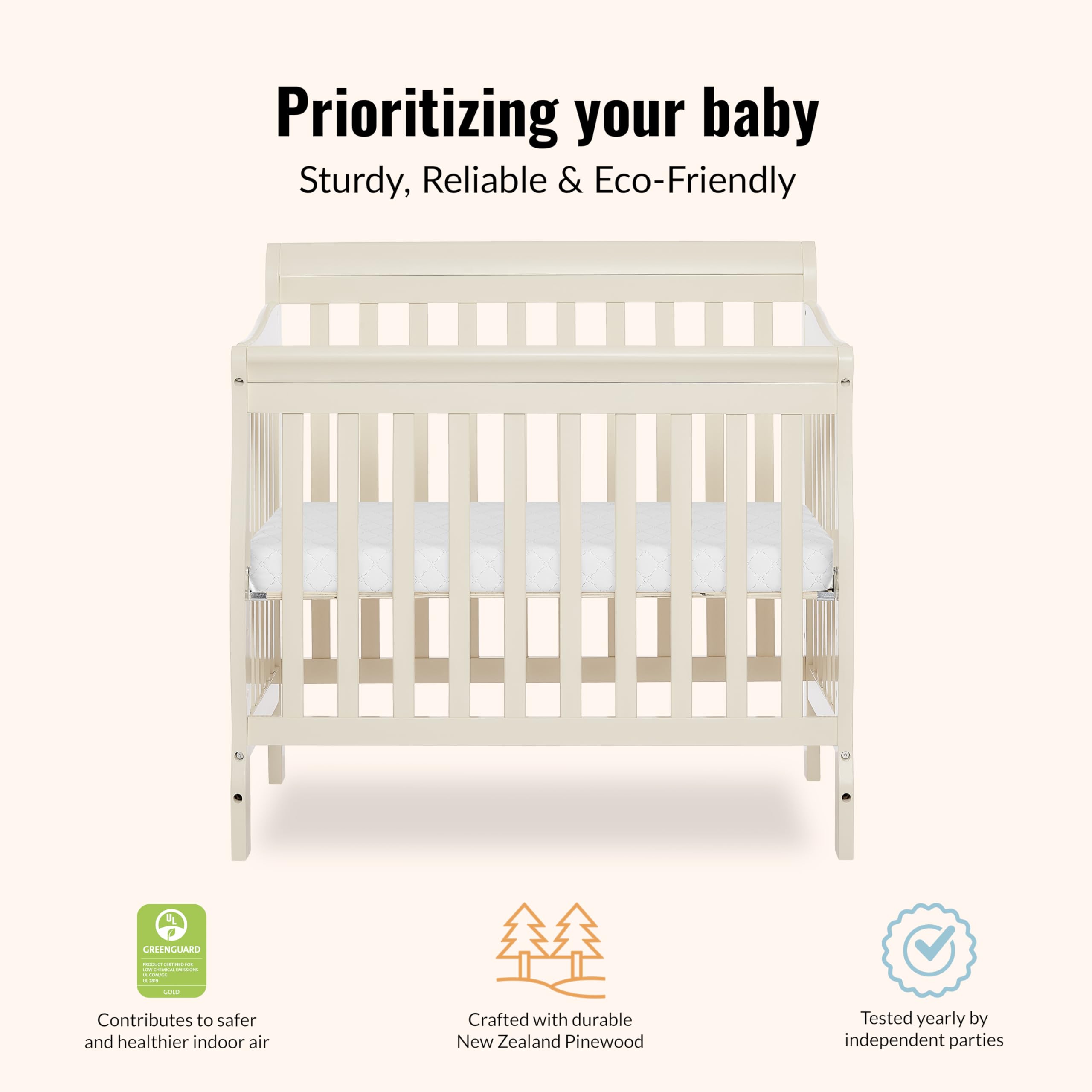 Every parent dreams of creating a cozy, safe, and stylish space for their baby — and the Dream On Me Aden 4-in-1 Convertible Mini Crib makes that dream a reality. Thoughtfully designed for modern families, this compact crib grows with your little one, offering timeless beauty, lasting quality, and unmatched versatility. From those first precious nights home to your child’s growing years, the Aden transforms right alongside them — from a mini crib to a mini daybed and finally into a twin-size bed (with and without footboard, conversion kits sold separately). Its space-saving design makes it perfect for apartments, condos, or smaller nurseries, while still giving your baby a comfortable, secure place to sleep. Crafted from premium New Zealand pinewood, this mini crib features three adjustable mattress heights, adapting effortlessly as your baby grows and learns to stand. Every curve and finish has been designed with both style and safety in mind, creating a nursery centerpiece that complements any décor. Parents can rest easy knowing the Aden meets and exceeds all ASTM, CPSC, and JPMA safety standards. It is also GREENGUARD Gold Certified, meaning it has been screened for over 10,000 chemicals and VOCs to ensure cleaner indoor air for your baby’s health. The Baby Safety Alliance verification and CPSIA compliance further confirm its commitment to a safe, toxin-free sleep environment. For extra convenience, the Aden includes a 1-inch mattress pad and fits perfectly with any Dream On Me GREENGUARD Gold Certified mini crib mattress. Measuring 39"L x 28"W x 37"H, it’s the ultimate space-saving nursery solution that doesn’t compromise on comfort or quality. Whether it’s your first baby, a gift for grandparents’ home, or part of your growing family’s dream nursery, the Dream On Me Aden 4-in-1 Convertible Mini Crib is built to stay — from sweet beginnings to growing dreams.