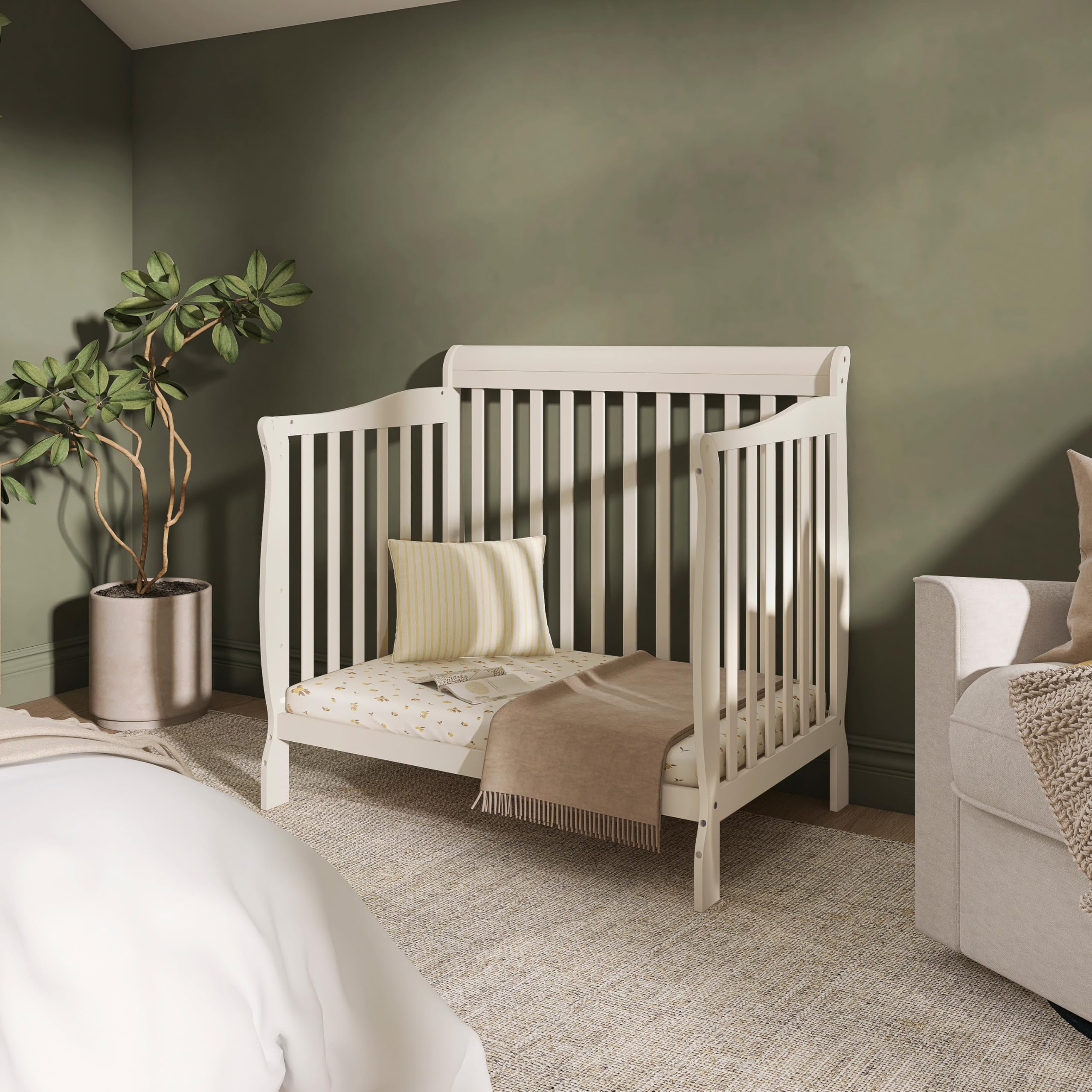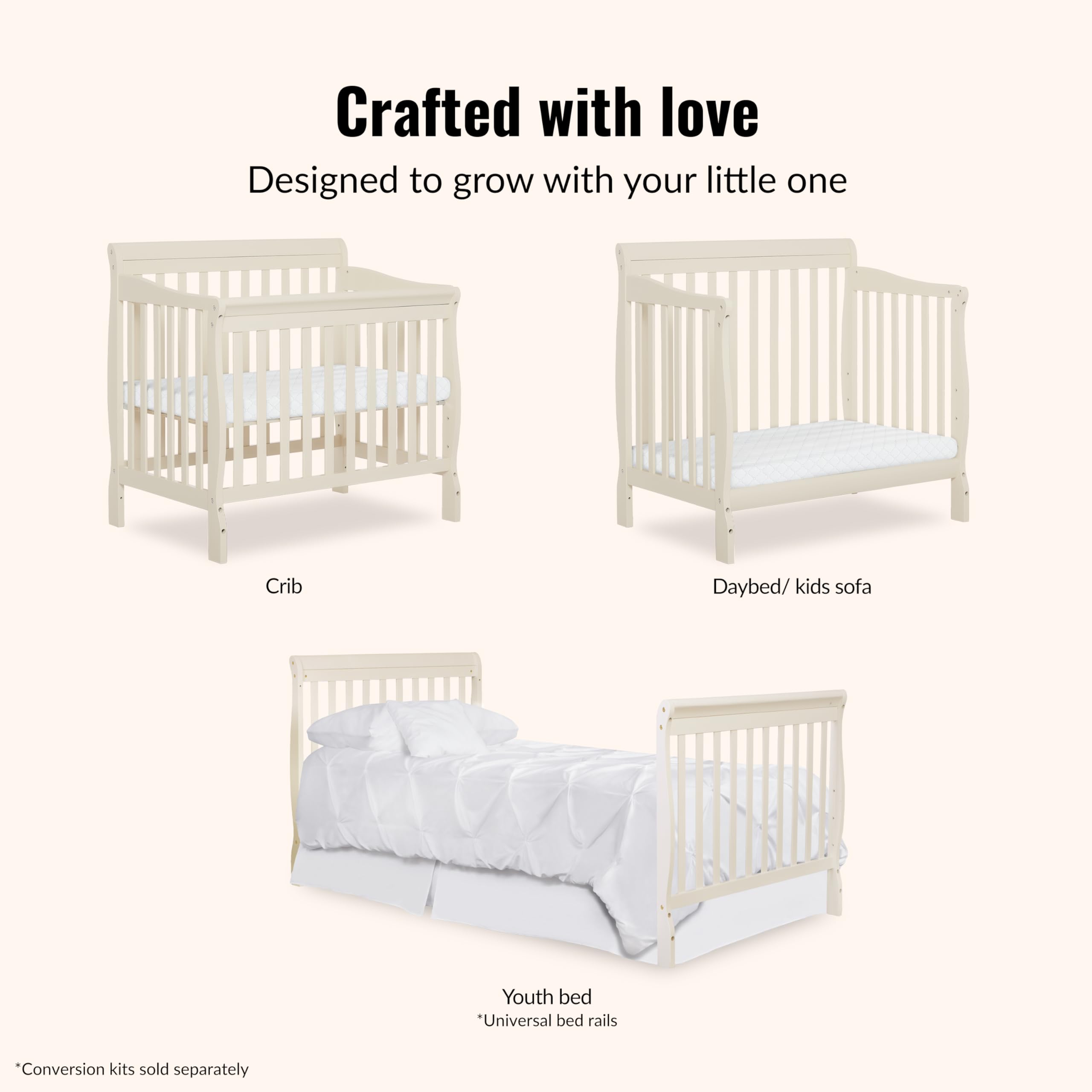 4-in-1 Convertible Mini Crib – Grows with your child from infancy through toddler years into childhood, easily converting from a mini crib to a mini daybed and a twin-size bed with and without footboard (conversion kits sold separately), delivering long-lasting value and versatility