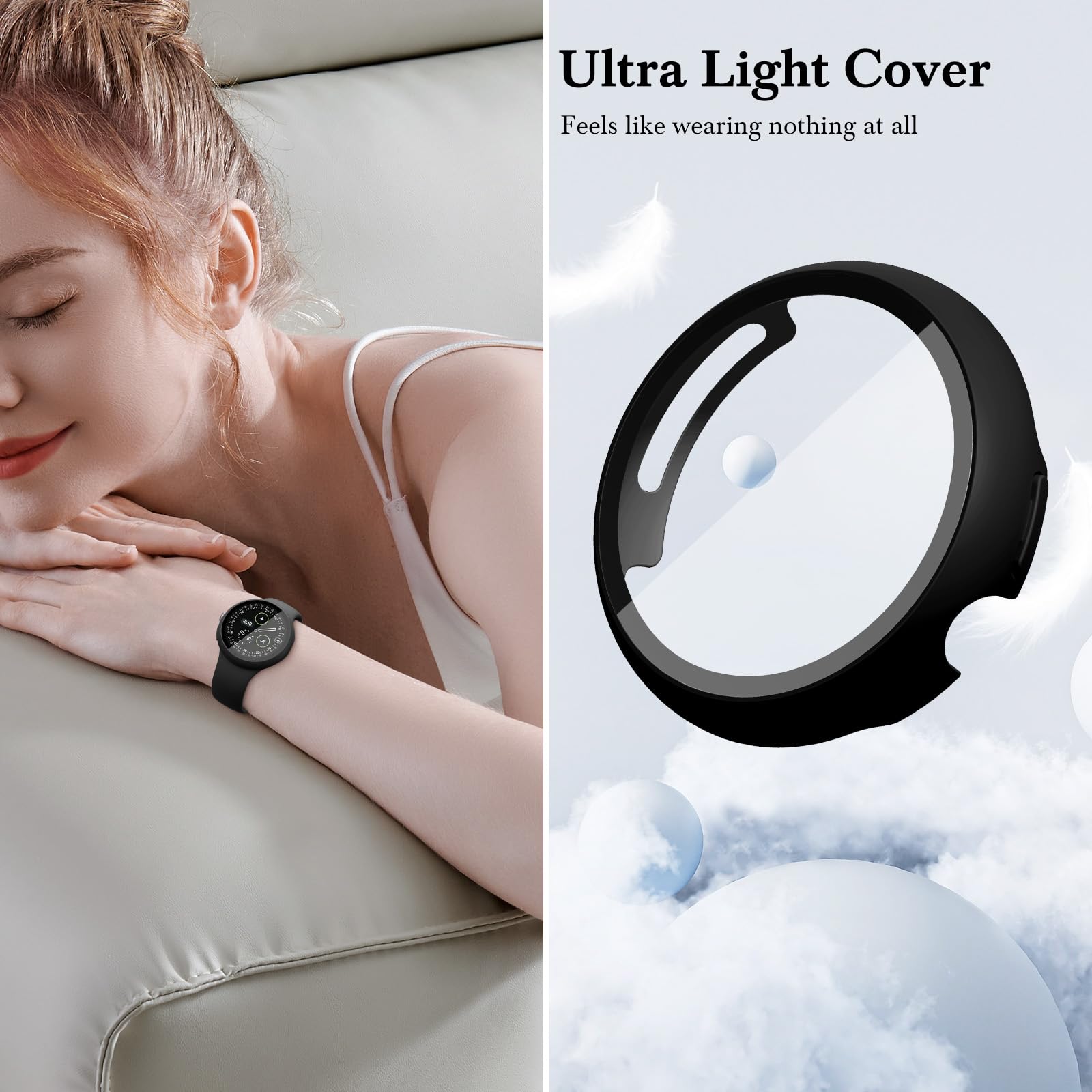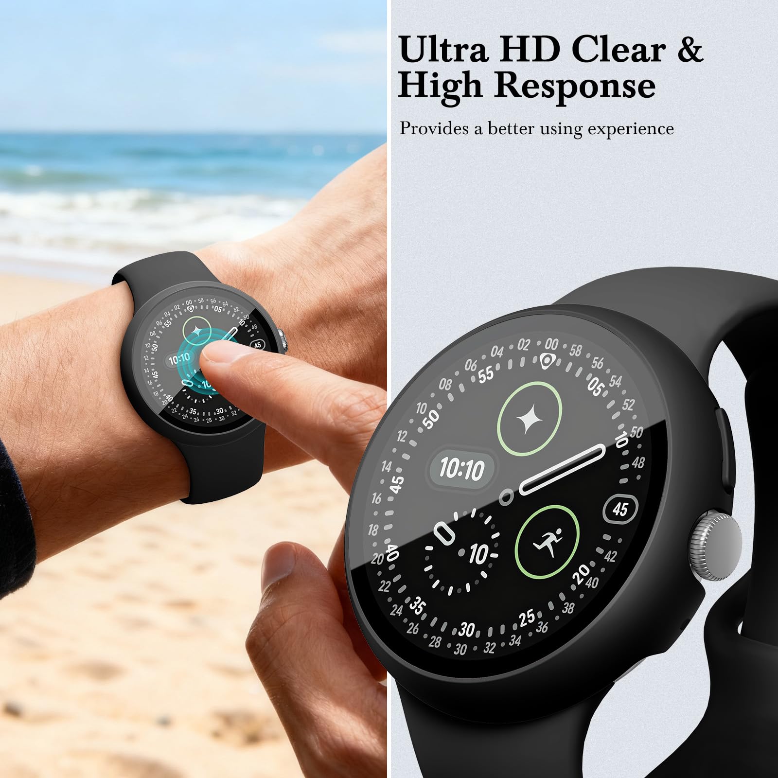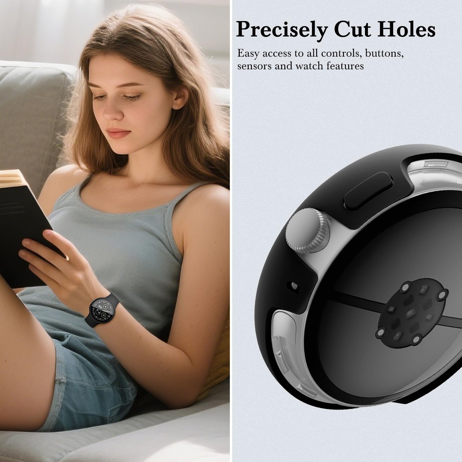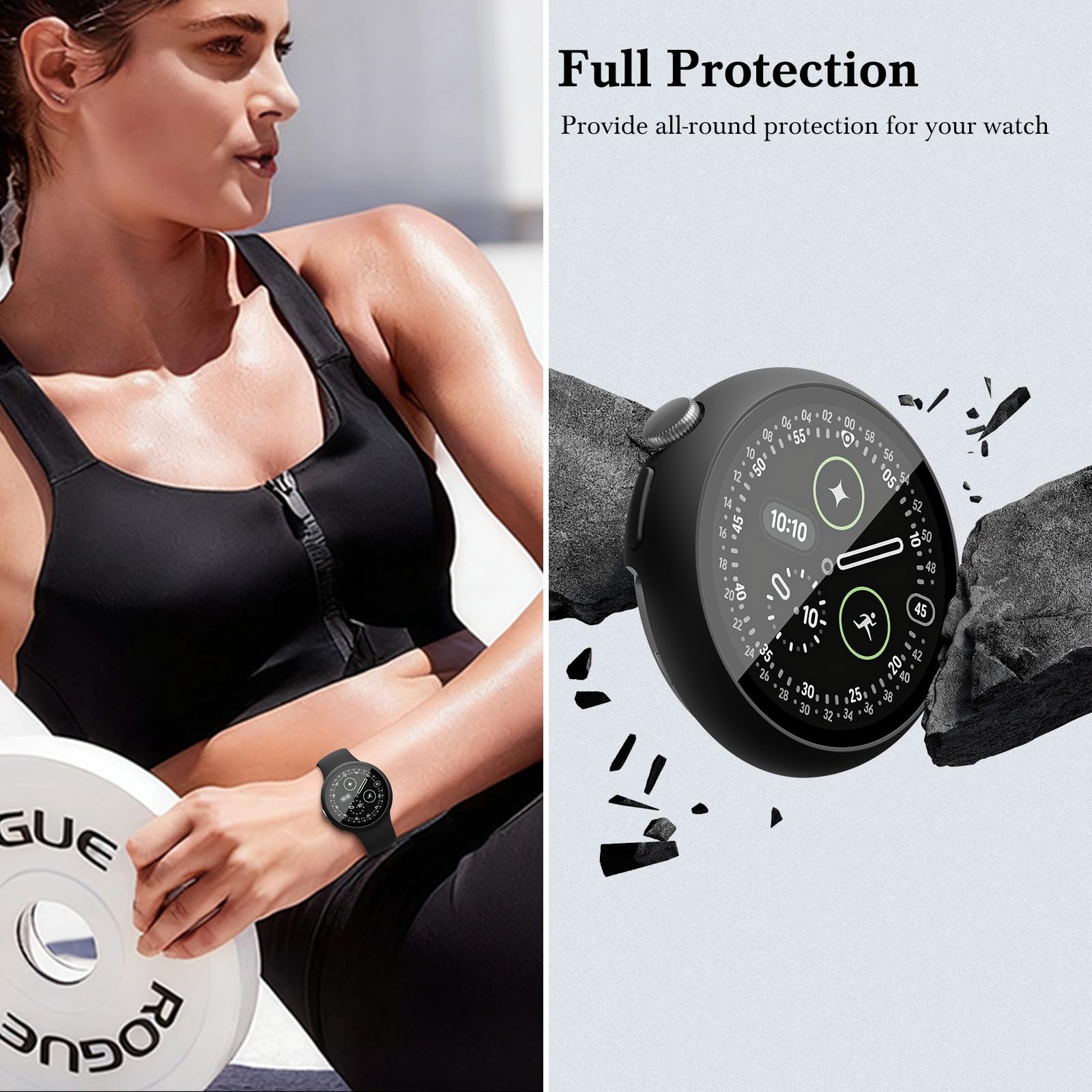 【Touch Sensitively & HD Clear】The case for pixel watch 4 case 45mm allows ultra-thin touch, maintains the original touching sensitivity for your watch. HD screen protector brings the ultimate experience to your watch. Precise cutouts for easy access to all controls, sensors and watch functions.