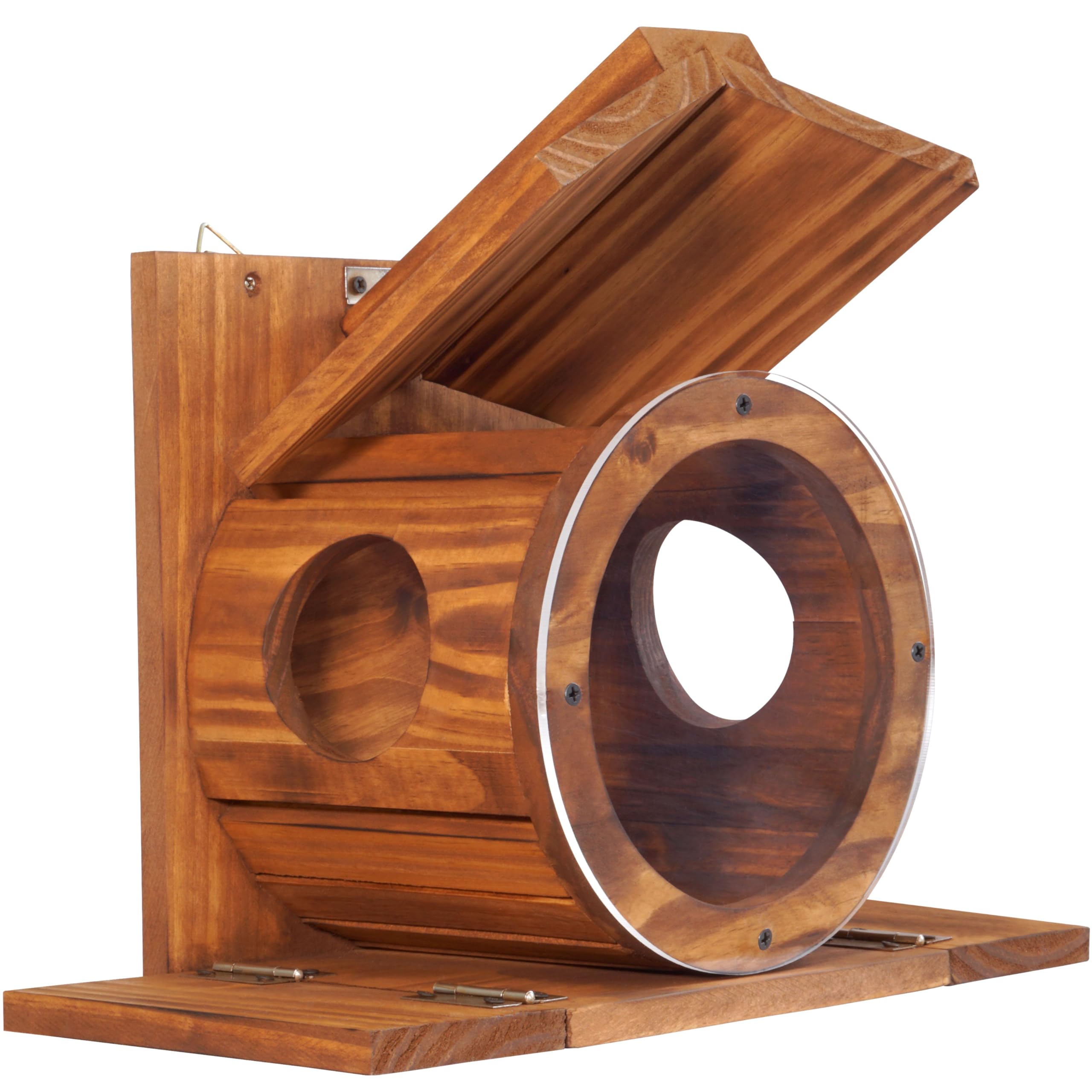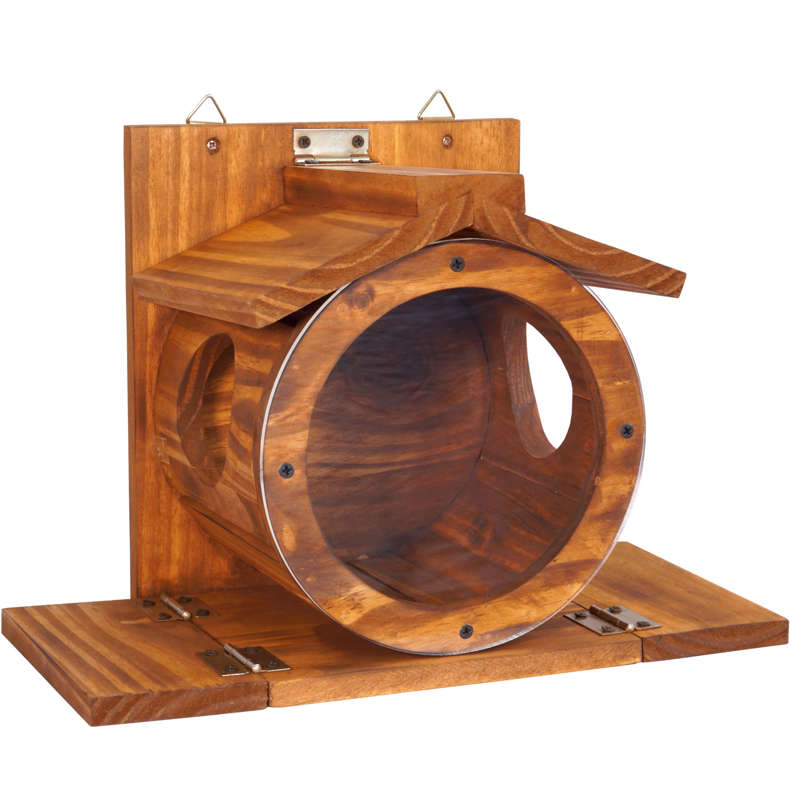 ✅ Attract Squirrels Quickly: The transparent acrylic in the front makes it easy for the squirrel to see the food, then go through the 2 holes on both sides to get in and get the food.