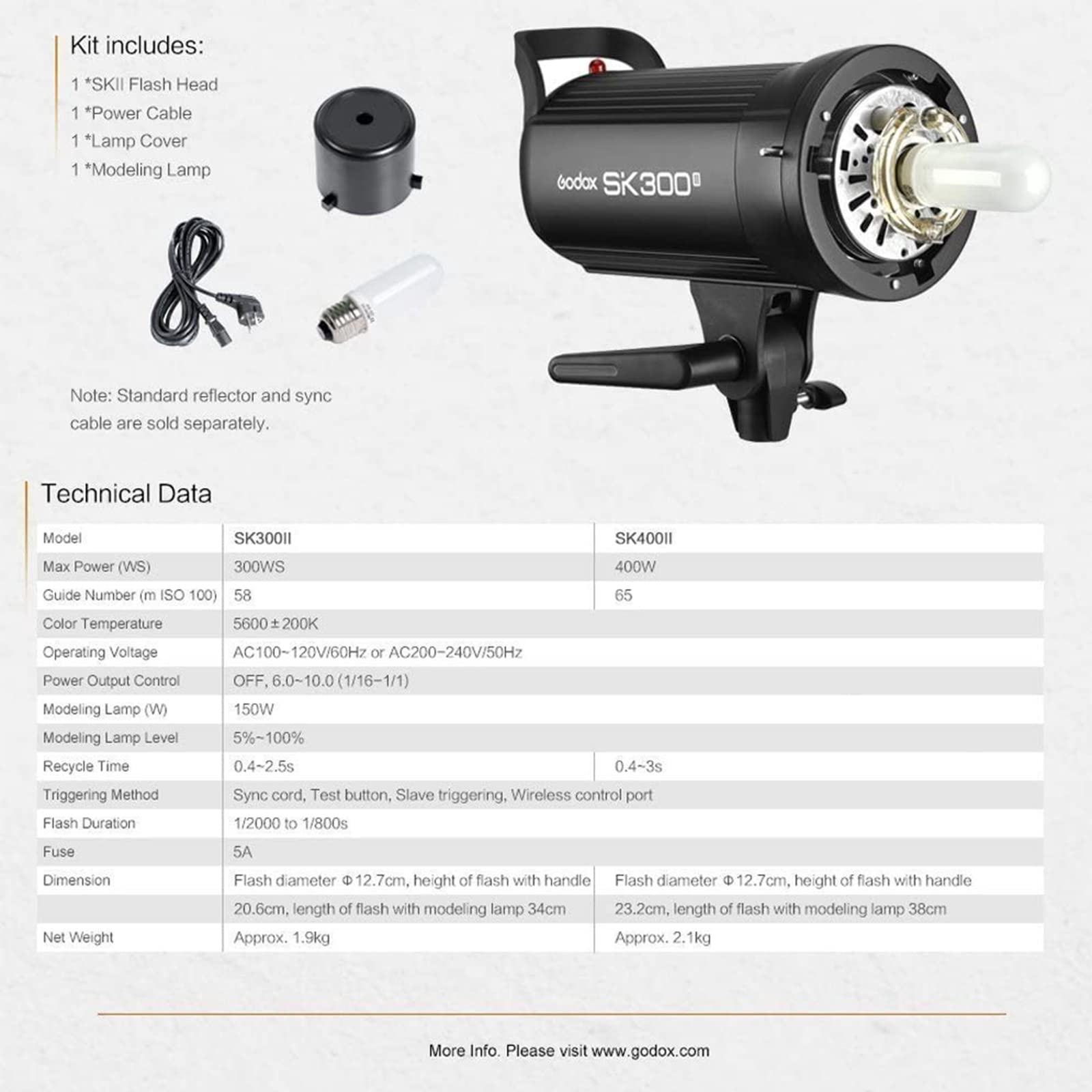 Precise Output & Anti-preflash Function:High-Quality Capacitors Provide Super Power, Precise Output. The Godox SK400II can enable synchronization with cameras having a one-preflash firing system
