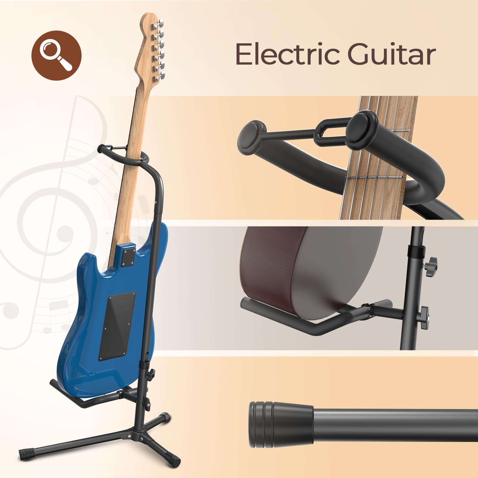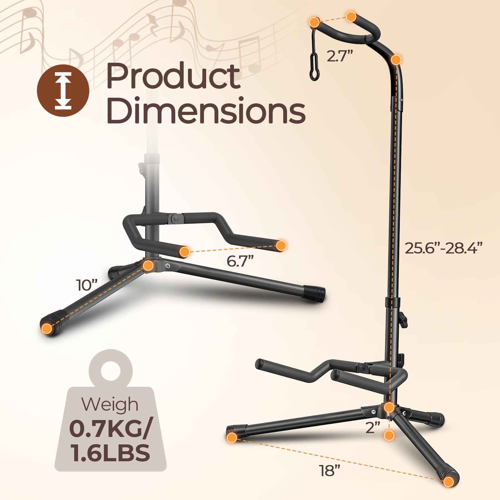 Height-Adjustable Guitar Stand: Unlike traditional stands, this innovative design features rotatable height adjustment (25.6"–28.4") for flexible positioning. A locking ball on the top ensures the stand head stays securely in place, preventing bending or instability.