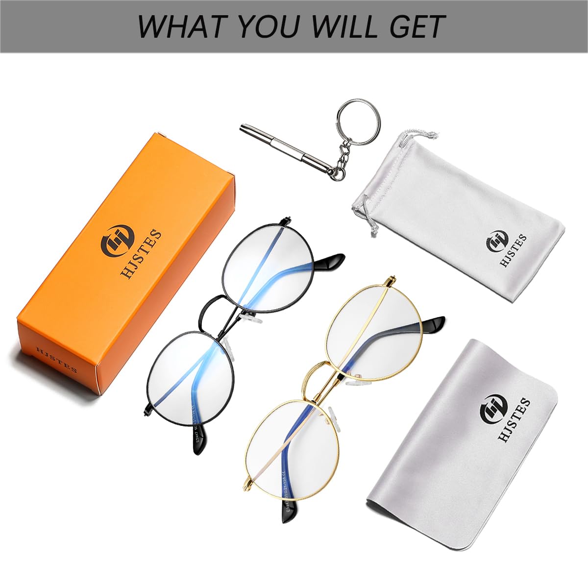 BLUE LIGHT BLOCKING LENS ►Retro blue light round glasses can effectively block harmful blue light and glare. Non-prescription lens (interchangeable lenses) glasses for women men teen girls suitable for long-term staring at digital screens, computers, reading, playing games caused by eye fatigue, blurred vision, headaches and other symptoms. Help you have a smooth sleep.