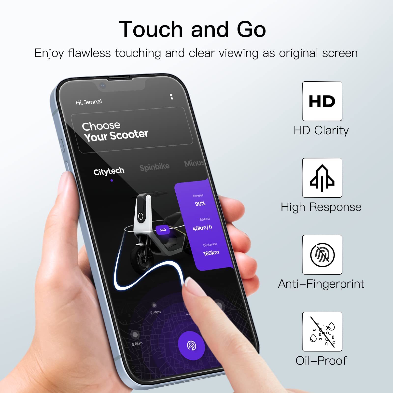[Fingerprint & Oil-Proof] The hydrophobic and oleophobic coating prevents fingerprints, oil residue and sweat from gathering on the screen. Always maintain a clean screen environment for you