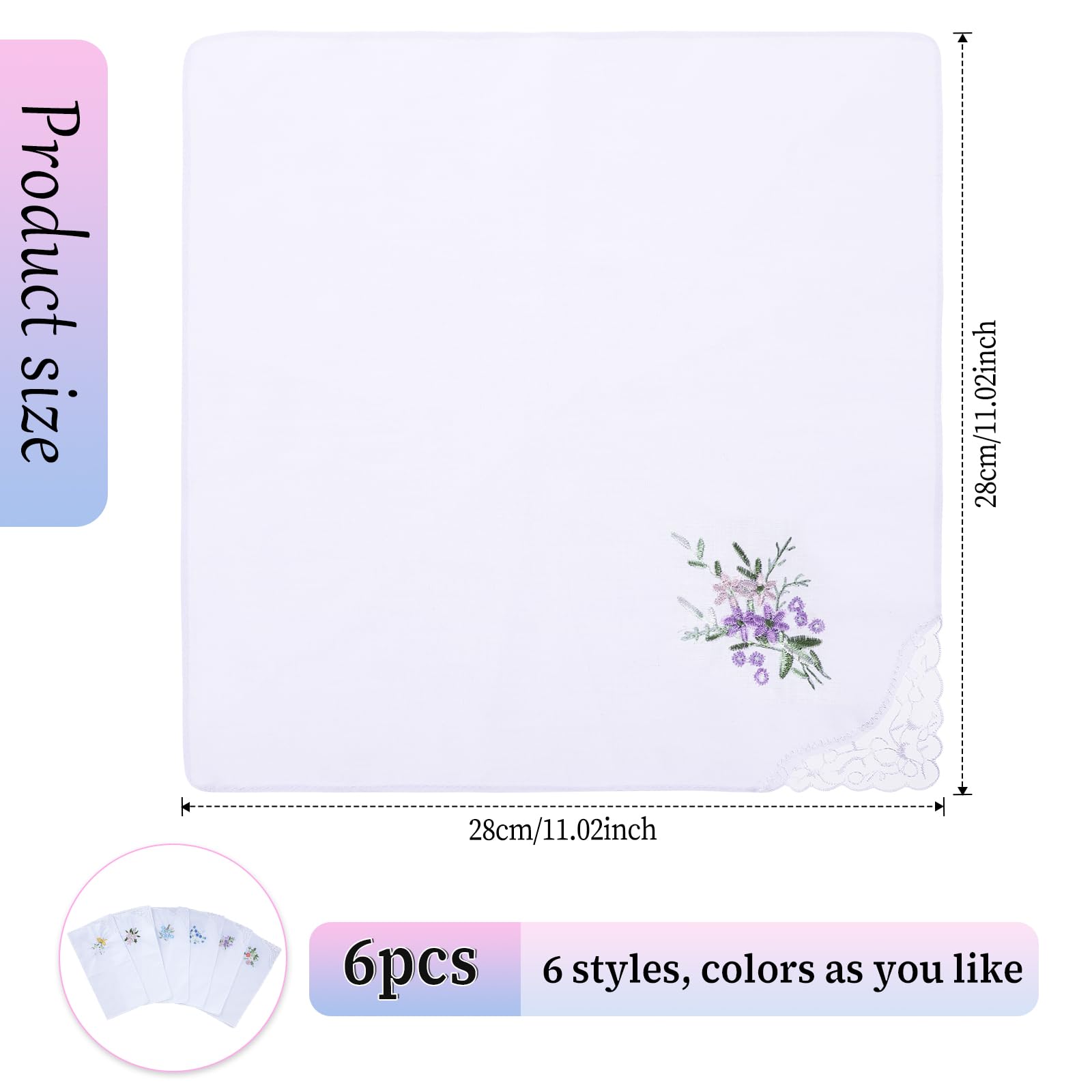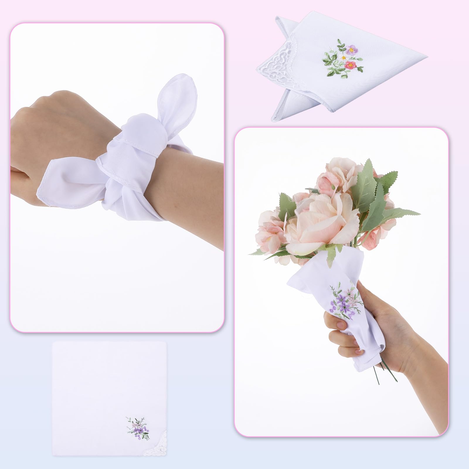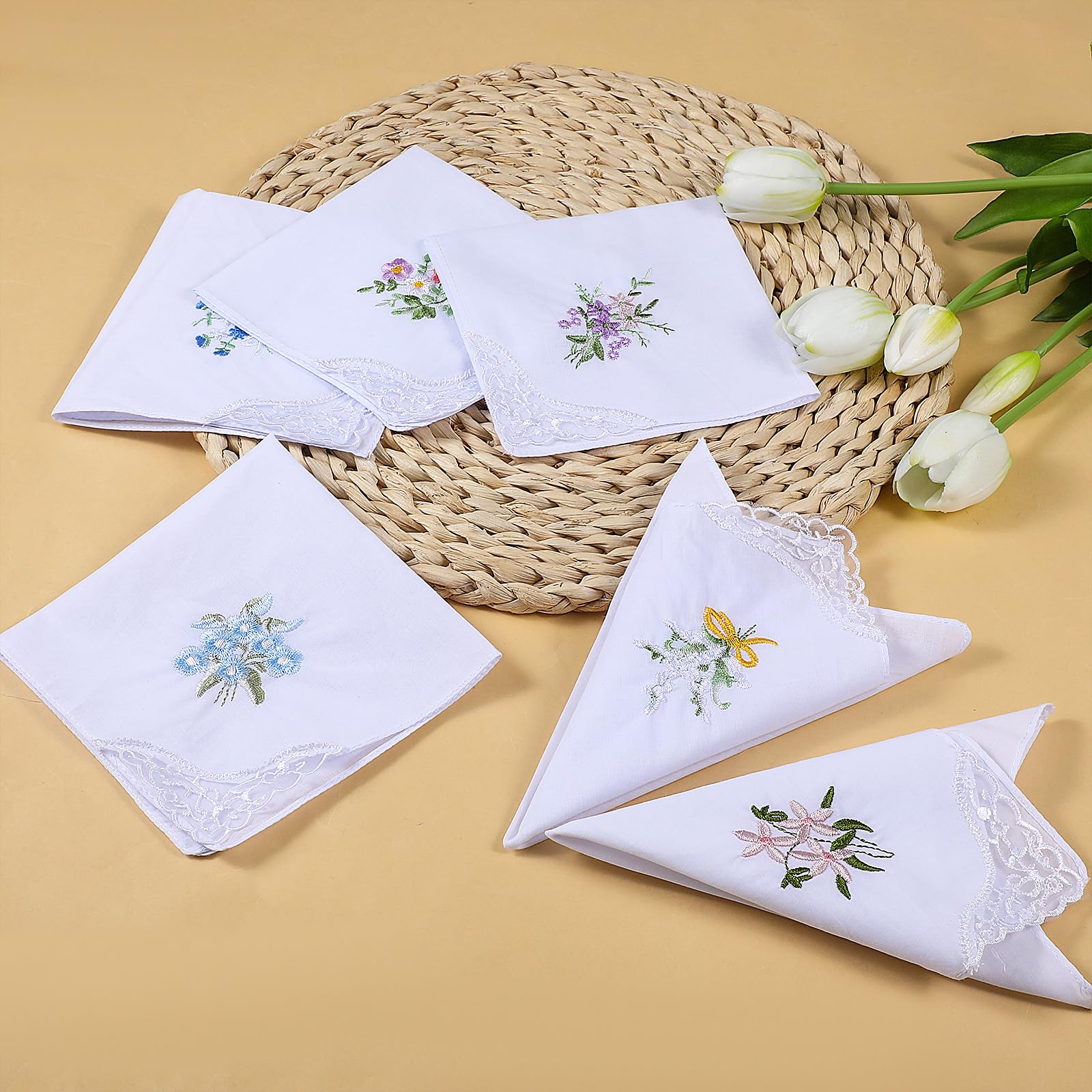You will get: 6pcs women's handkerchiefs, white lace flower embroidery design, retro and elegant, suitable for daily carry-on use, or as a bride for marriage and engagement. The quantity is sufficient, exquisite and beautiful, you can use it as a fashion accessory, whether you use soft cotton women's handkerchief headscarf decoration, or give it to family and friends, it is a memorable gift