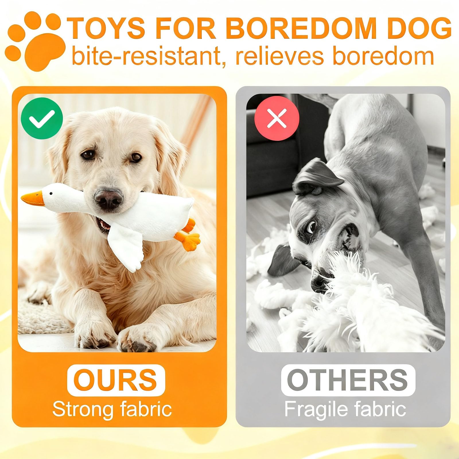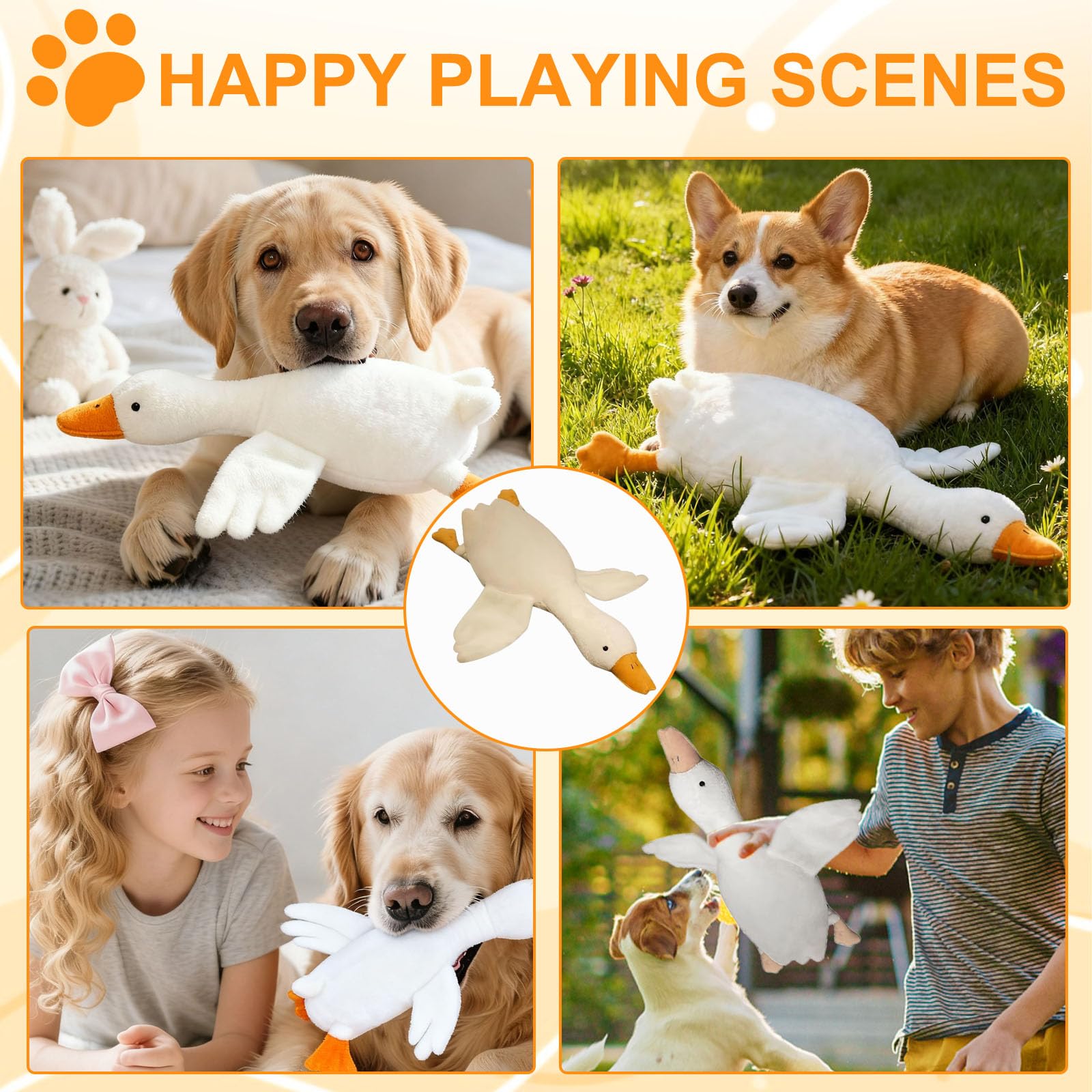 Awesome White Duck Dog Toys: This super soft goose is perfect for your dog to carry around, snuggle with, and love. It's got that crispy-squeaky sound pups really dig inside.