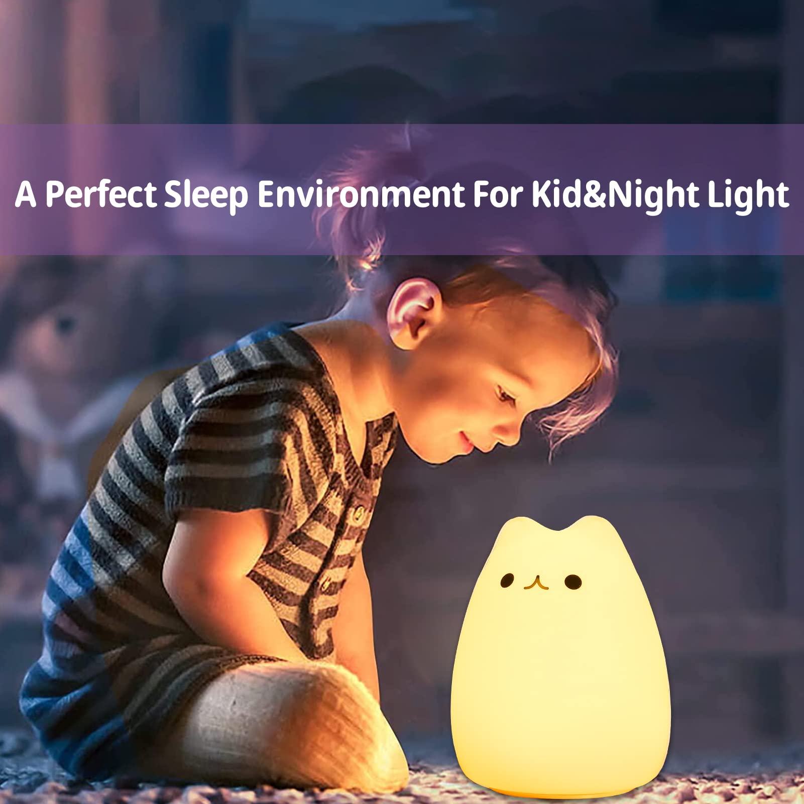 ZKLiLi Cat Night Light, Cute Cat Nursery Lights USB Rechargeable Cat Lamp Nightlight Birthday Christmas Gift with Warm White and 7-Color Breathing Modes for Kids Baby Children