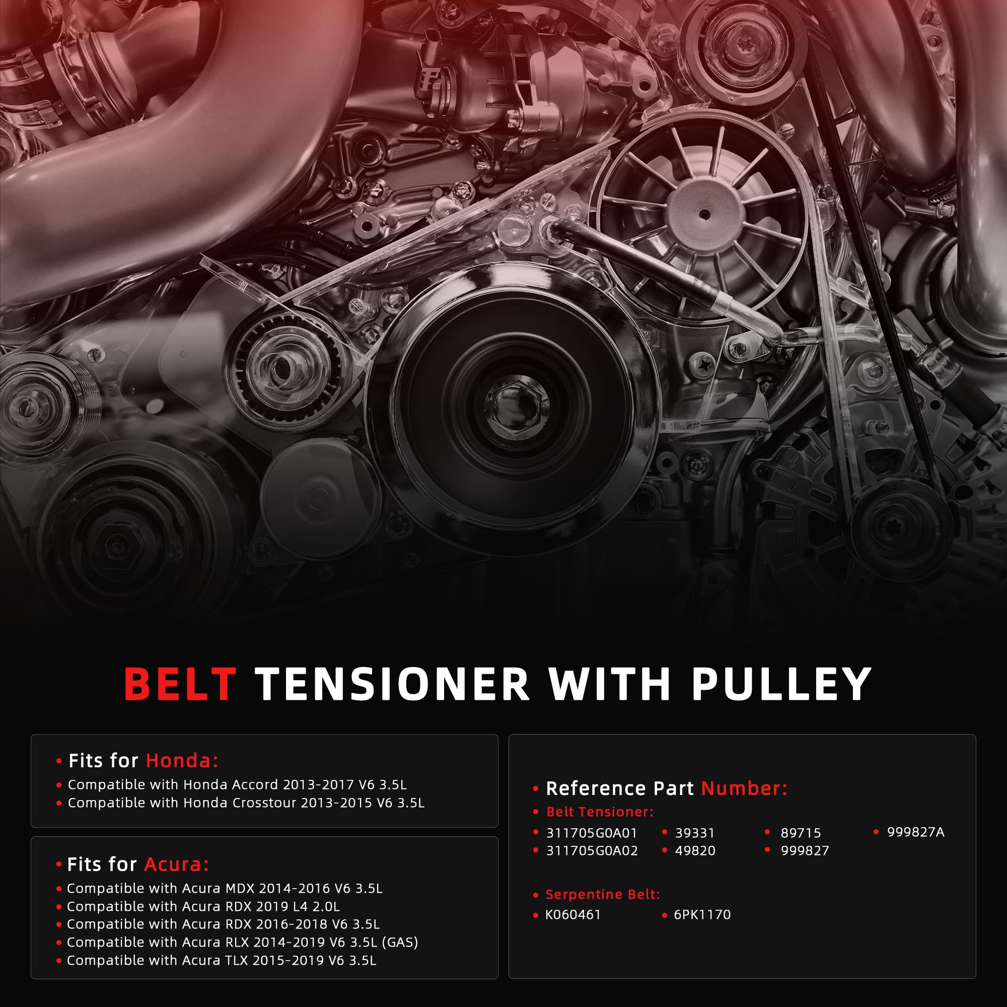 Vehicle Fitment:Tensioner Belt Set Compatible with Acura TLX 2015-2019 V6 3.5L; Compatible with Honda Accord 2013-2017 V6 3.5L, For Crosstour 2013-2015 V6 3.5L