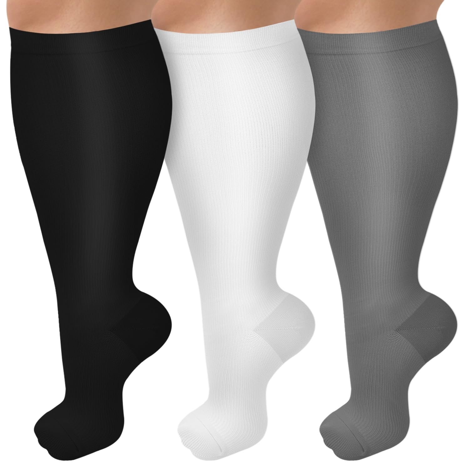 【Easy Care & Customer Service】- Our plus size compression socks are easy to care for. Just wash them with like colors and tumble dry on low. If you have any question Please contact our customer support. Always select the right size to buy, by measuring your calf at the widest point with muscle relaxed to get accurate size.