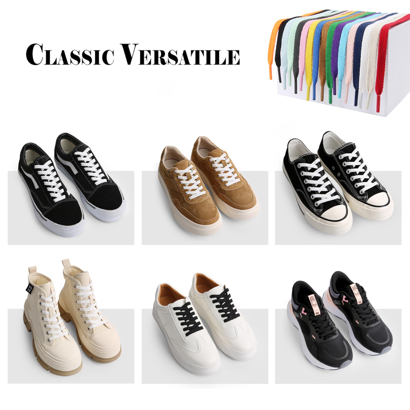 【Application】: Suitable for ladies, men, teenagers, children, girls or boys who want to replace shoelaces. Our flat white shoelaces fit for most shoes,suitable for sneakers,sports shoes, board shoes, casual shoes, running shoes, canvas shoes, hiking boots, roller skates and etc