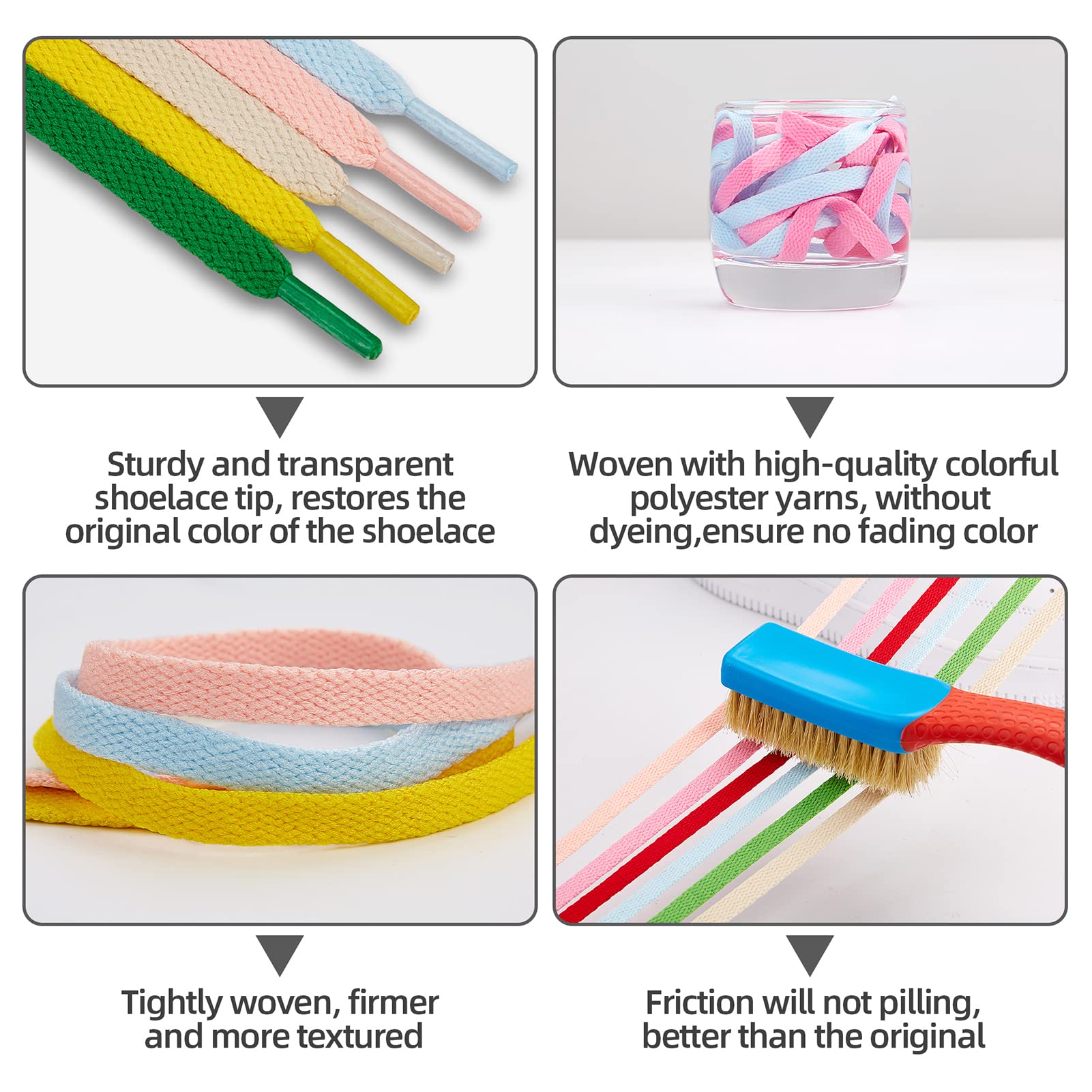 【Features】: 18% more dense weave than the market's normal shoelaces, double layer weaving process is stronger, tighter and more textured. Increase the ironing process, reduce wrinkles, more smooth