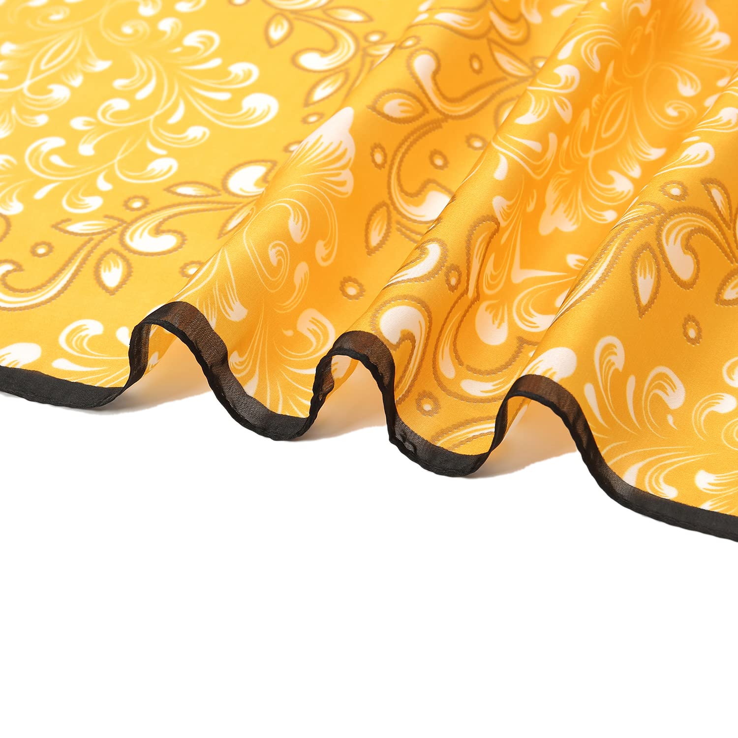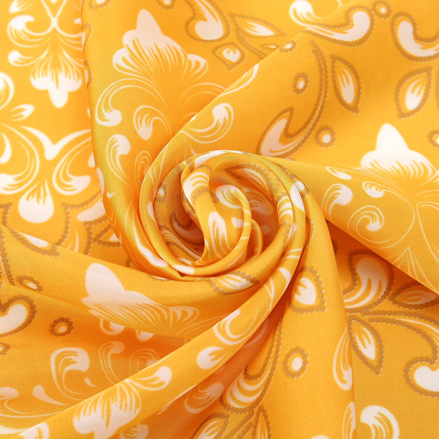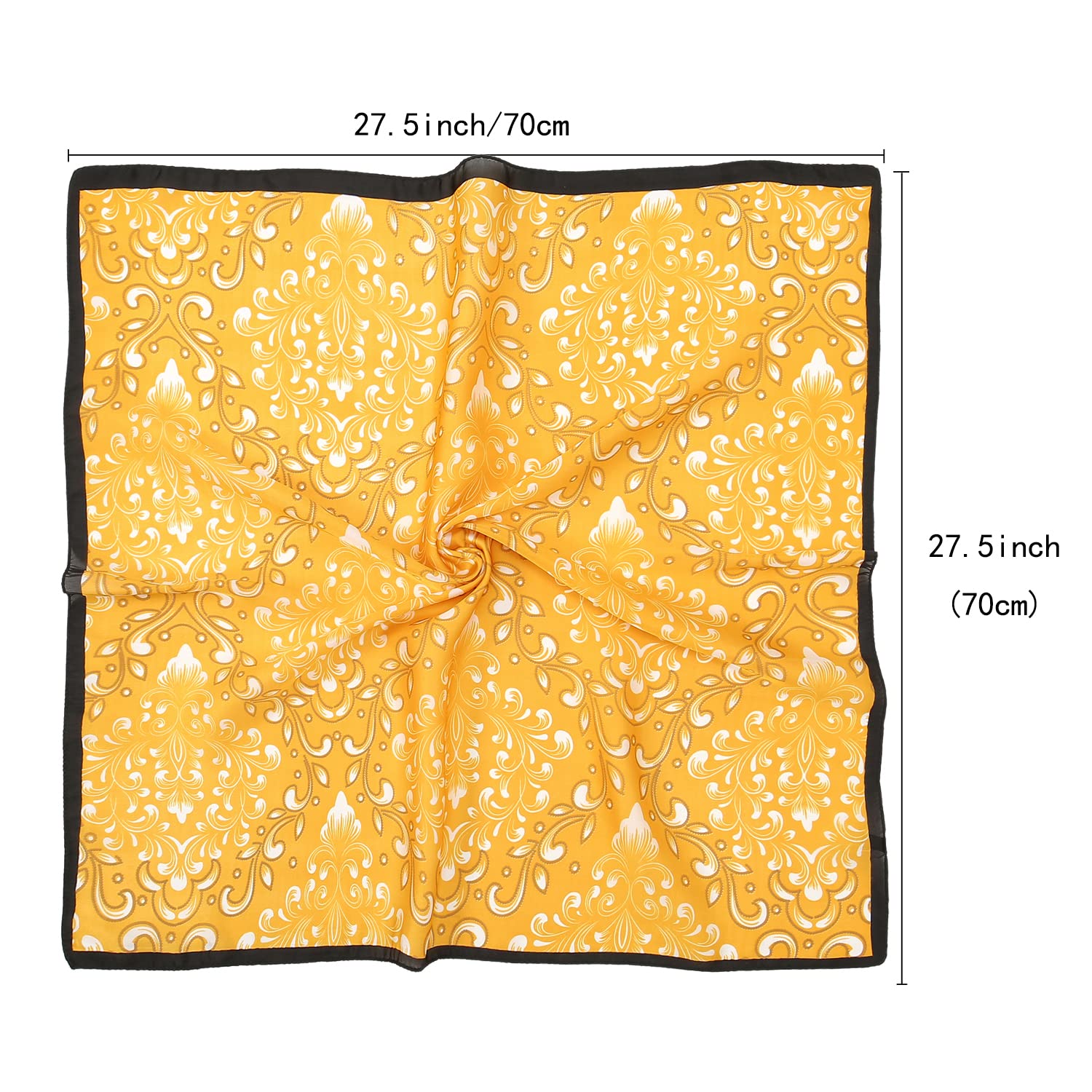 Size of the square scarf is 27.5'' x 27.5'', which can be used as a hair scarf, scarf top, neck scarf, hair wrapping at night, pirate head scarf on Halloween, also can be used for hat and handbag decoration.