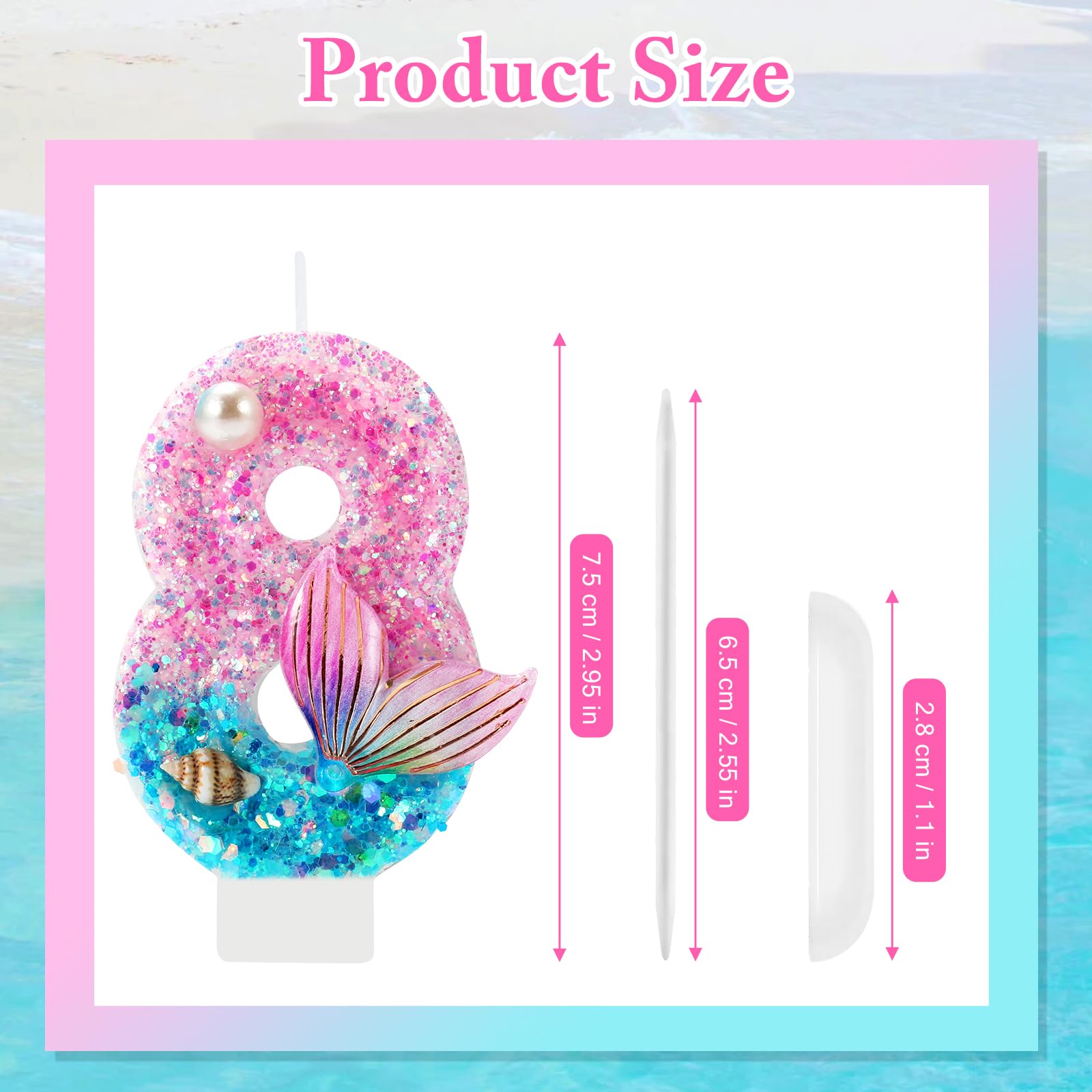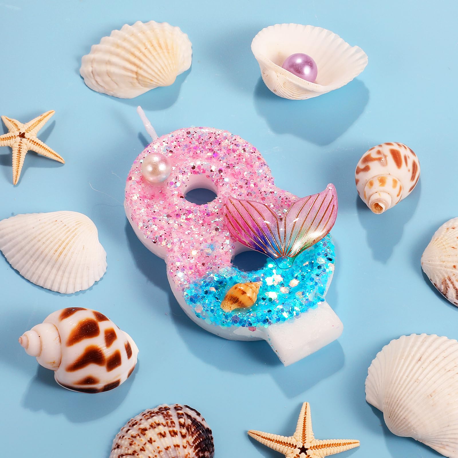 Magical Mermaid Design – Make a splash with these stunning number candles, adorned with shimmering pink & blue glitter, delicate fishtails, and conch shell accents! Perfect for mermaid-themed parties, ocean celebrations, or anyone who loves a touch of underwater fantasy.