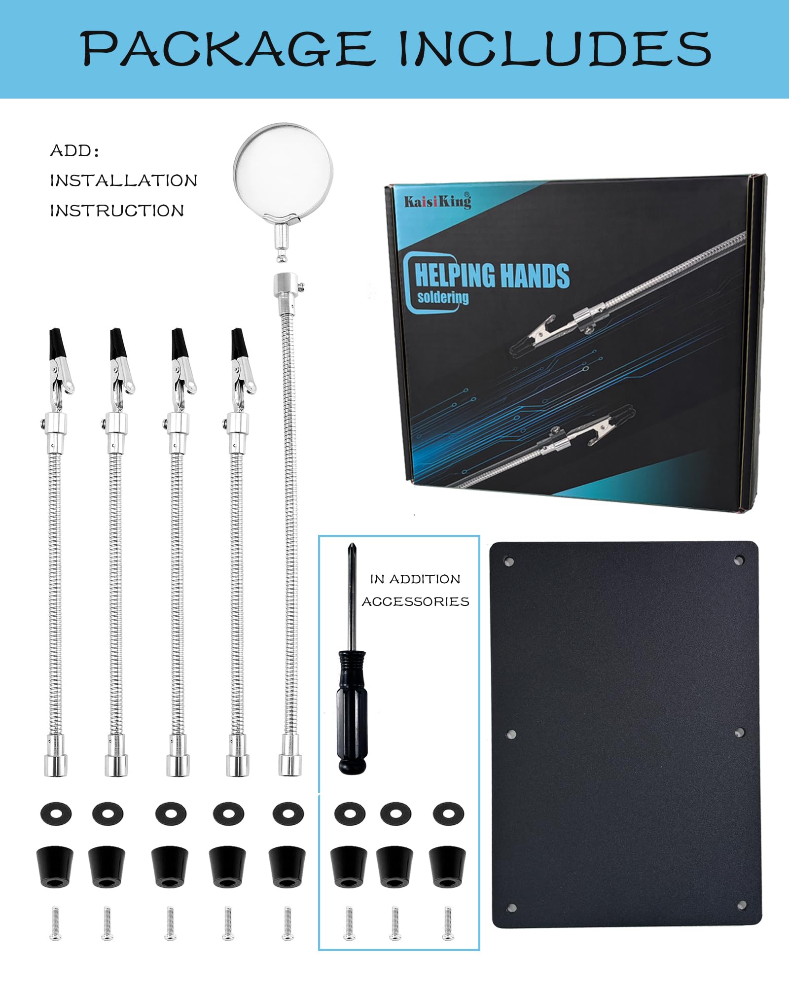 HEAVY DUTY BASE: Kaisiking soldering helping hands with weighted metal base,7.87" x 5.51" rectangular painted steel base ensures your soldering station won't tip over.