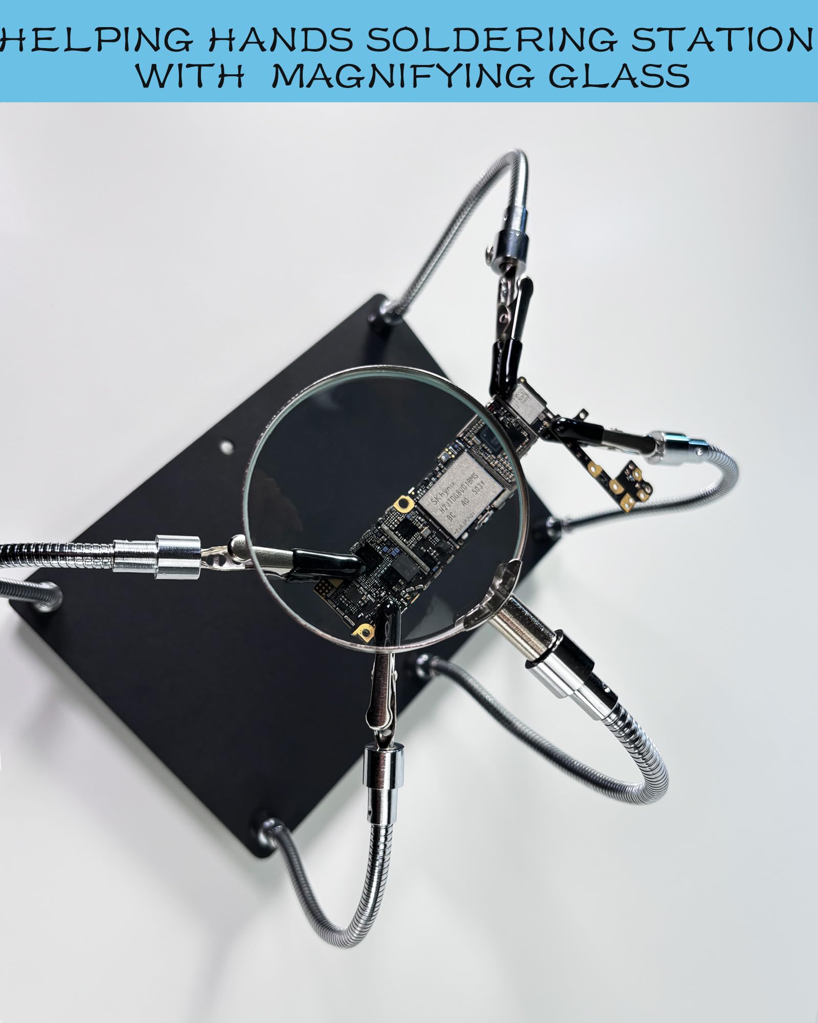 Helping Hands Soldering Station with Magnifying Glass, PCB Holder 4 Flexible Arms Magnifier and Third Hand Soldering Tool for Electronic Repair Soldering Jewelry Crafts