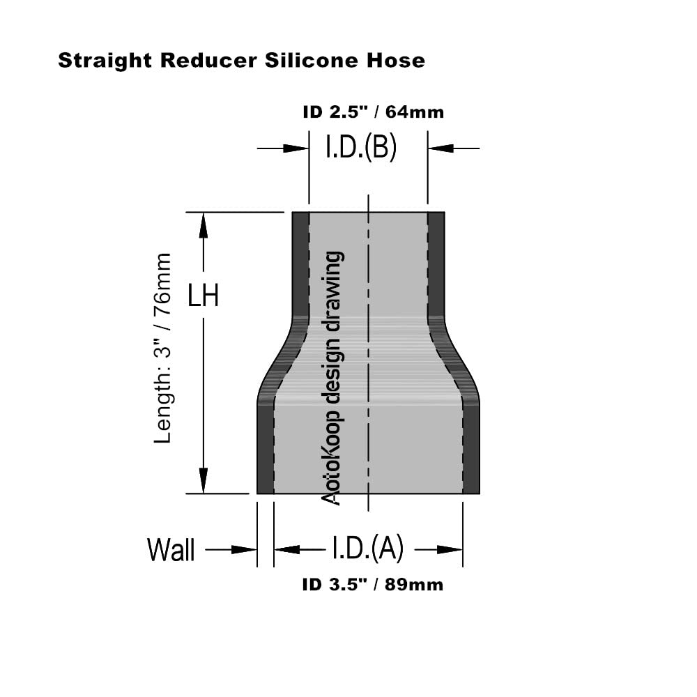 Size: Straight Reducer, ID 2.5" to 3.5" (63mm to 89mm), Length 3" (76mm), Made of High Temp Reinforced Pure Silicone