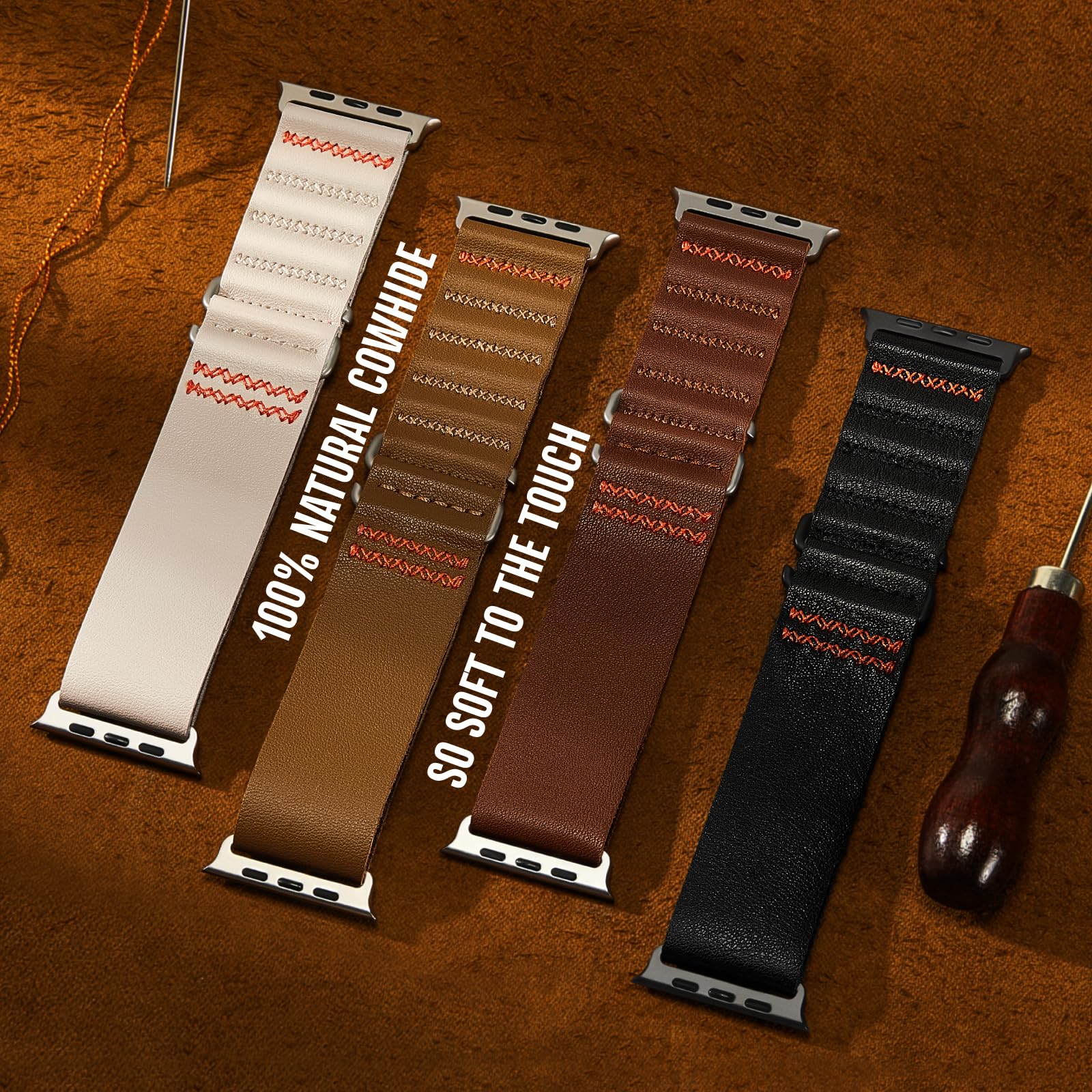 Handcrafted Masterpiece: Each leather apple watch band is a testament to our dedication to superior quality and craftsmanship. Hand-stitched with precision by skilled artisans, every stitch is a reflection of our commitment to excellence, making each 26MM wide band a unique and exclusive accessory for your apple watch ultra 2 Band and for those who appreciate a bold style.