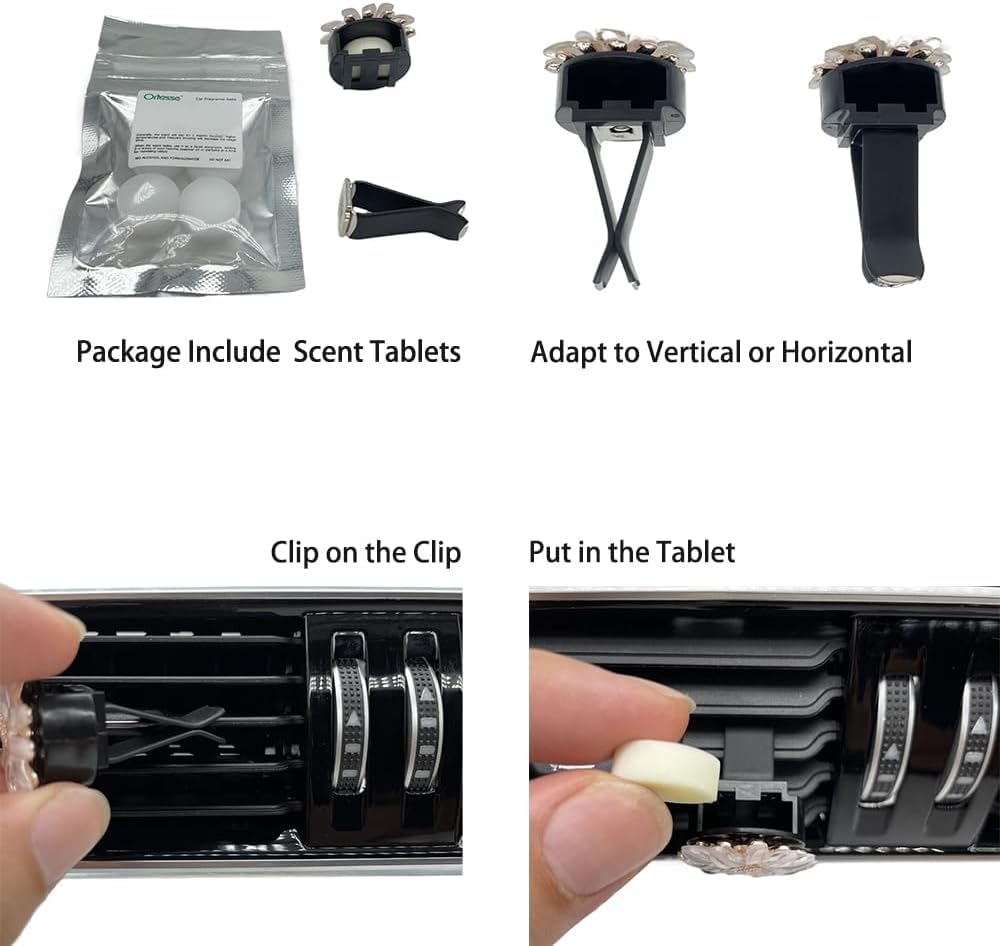 Intimate Bundle: Elevate your drive effortlessly with our meticulously designed bundle. Unveil 4pcs cute Flowers car vent clips (2pcs air freshener clips,2pcs decorations clips) that redefine elegance. Revel in 1 pack of vanilla scent car air freshener tablets for a rejuvenating journey. Plus, indulge in 2pcs felt pads for a custom fragrance touch.