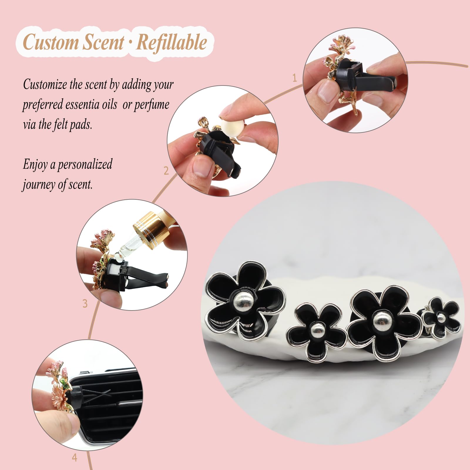 Effortless Enhancement: Infuse luxury effortlessly.The flowers that give you confidence blend seamlessly with the practical clip, ensuring stable installation on any air vent.