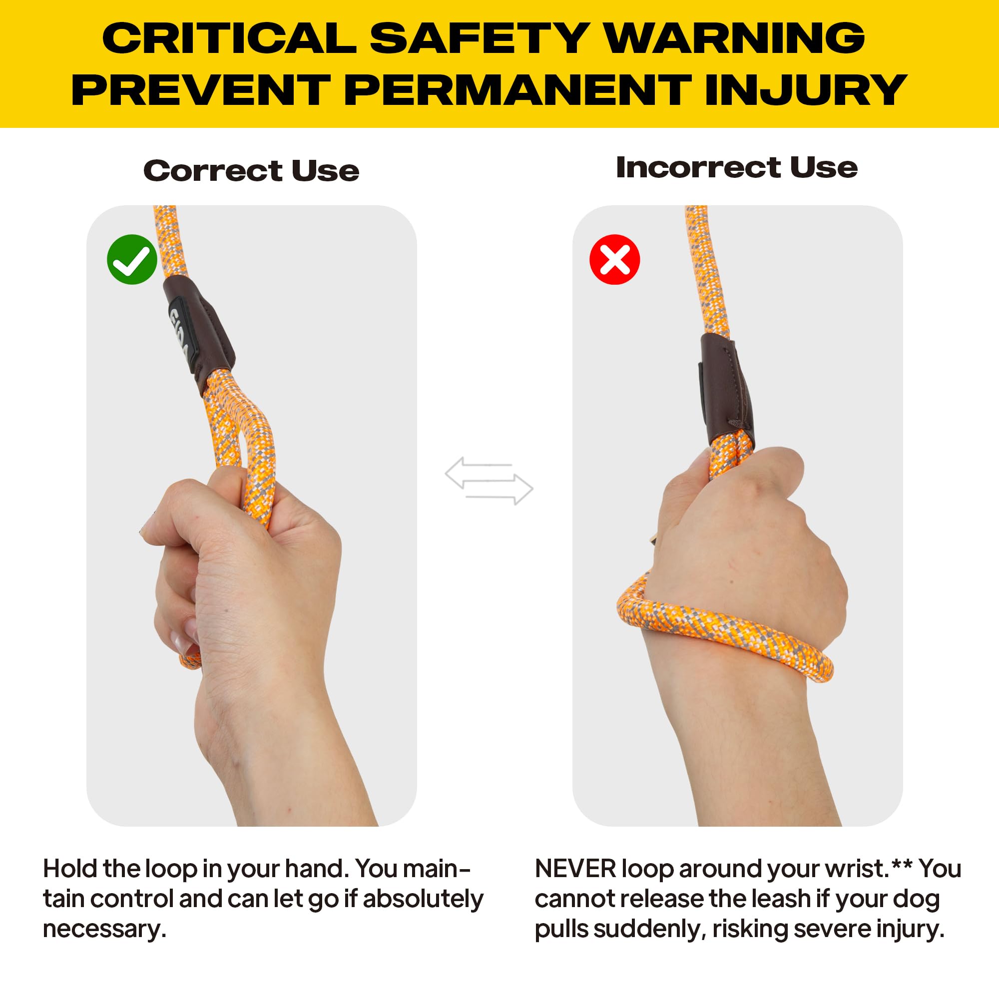 【SAFETY WARNING】: To prevent serious injury, never wrap the leash loop around your hand, wrist, or any other body part. Always hold the loop securely in your hand