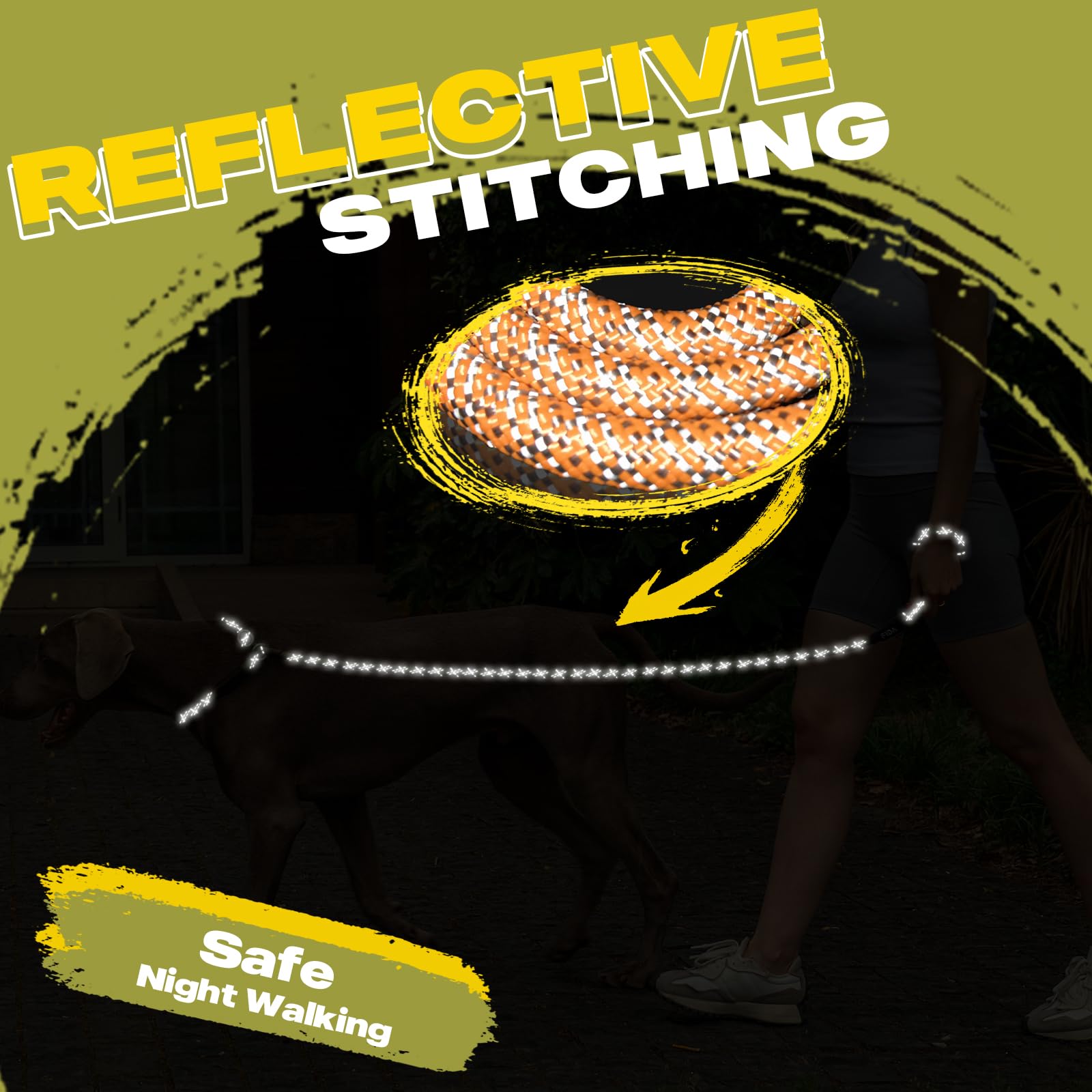 【Reflective for Night Safety】- The reflective straps on the entire rope leash ensures great visibility and security during night walk or jogging