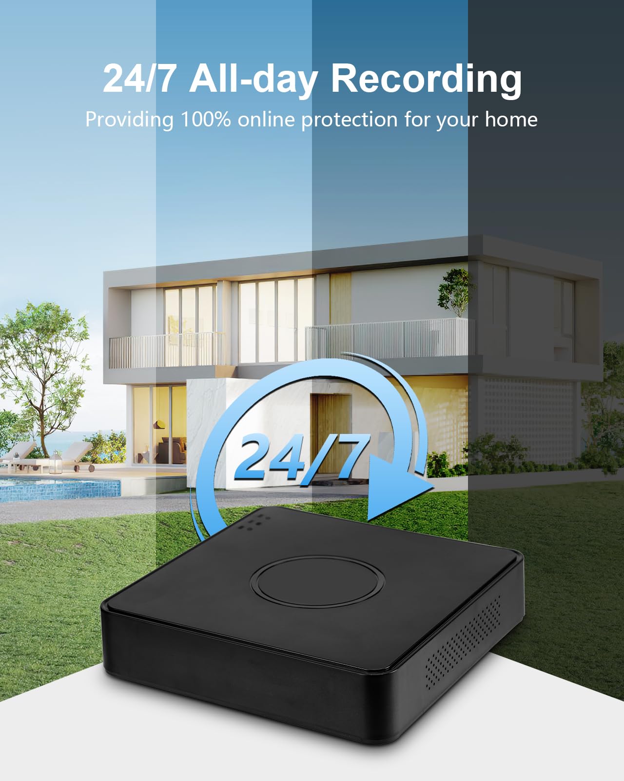 Pre-installed 1TB Hard Drive: 24/7 recording provides protection for the places you value. You can customize different recording modes for each wired security camera, enable smart playback, and export and store video files via USB.