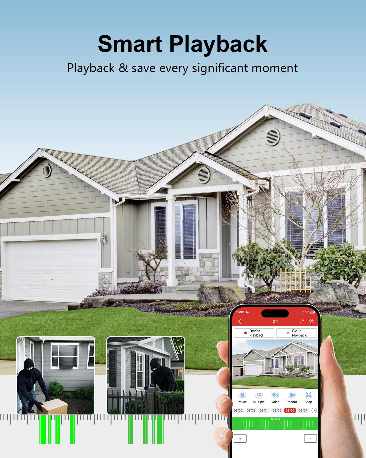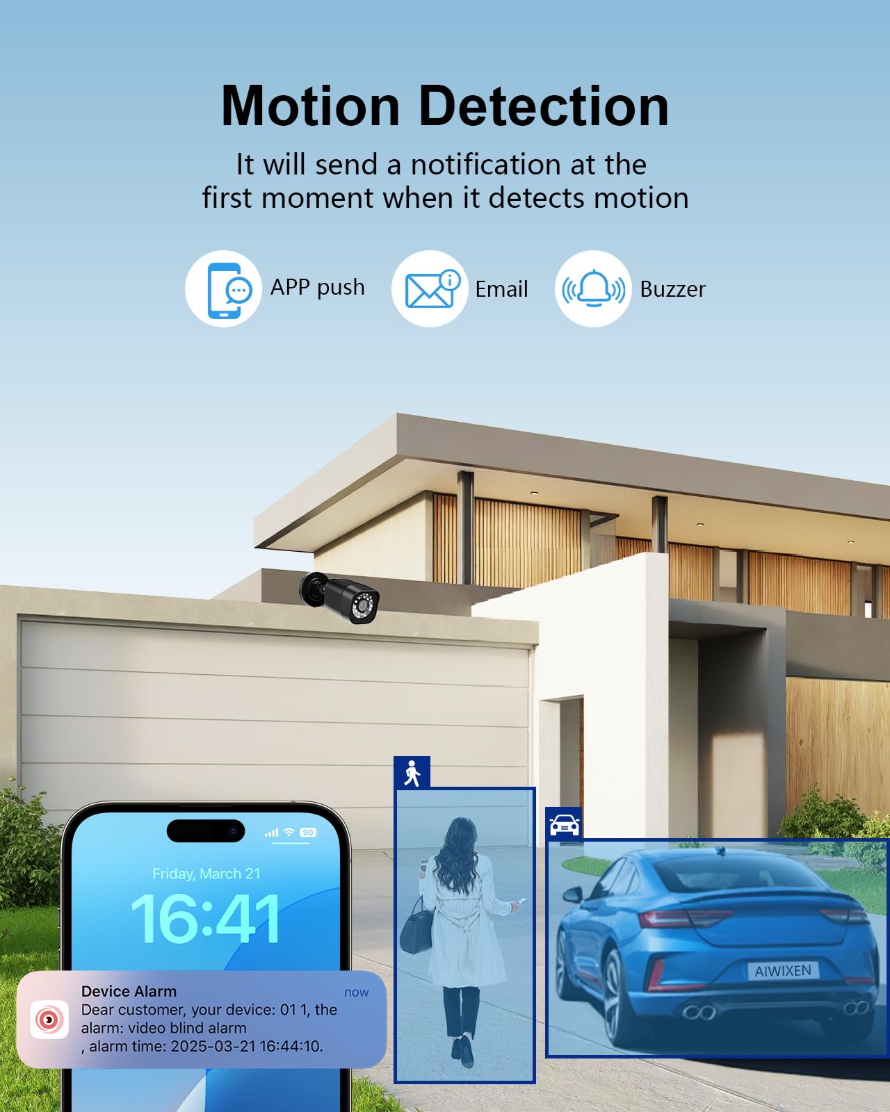 Smart Motion Detection: 4 camera security system configure detection for certain areas or the entire region, adjust sensitivity to reduce false alarms. Set up alerts to receive notification prompts and emails, ensuring you have ample response time.