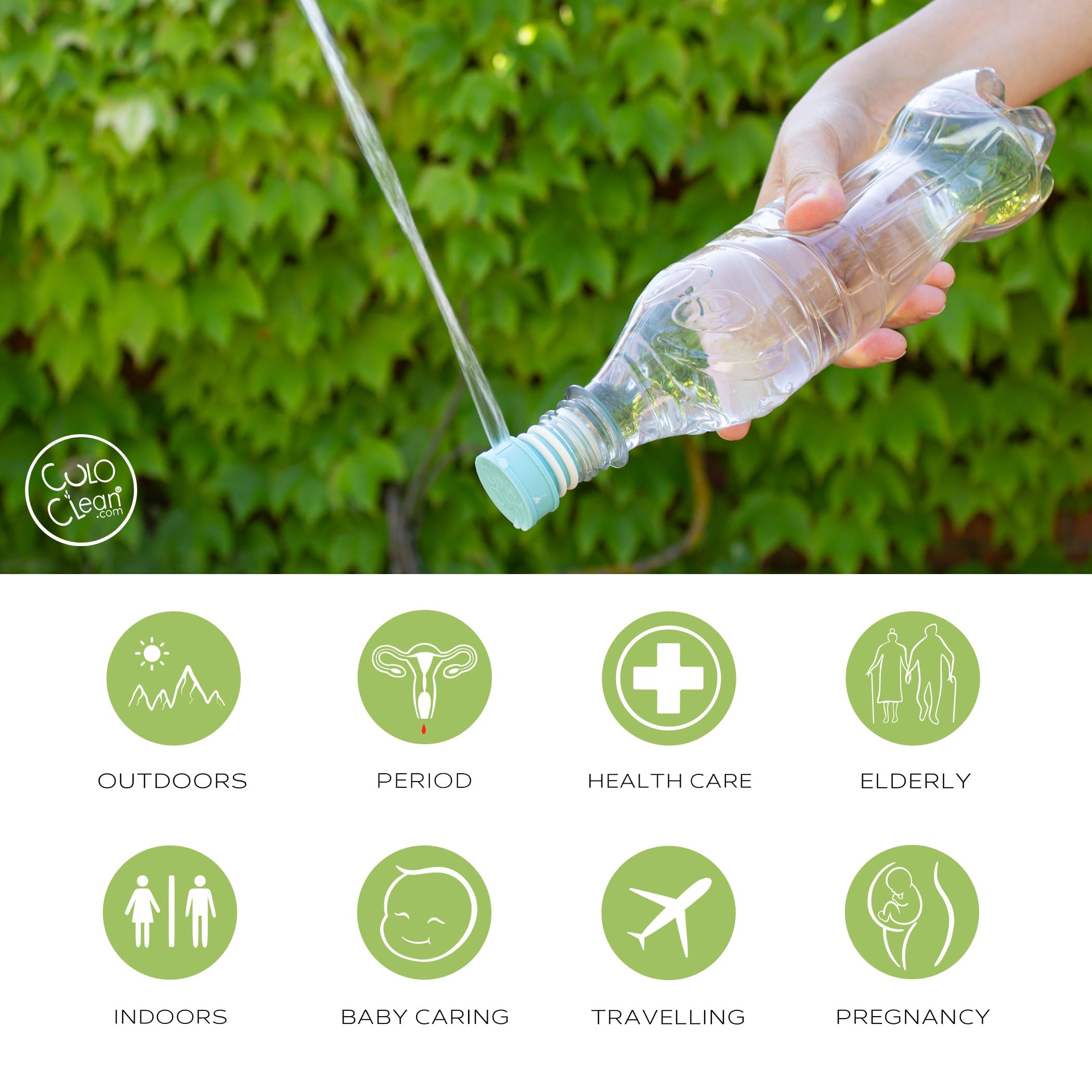 EASY-TO-USE BIDET SPRAYER FOR TOILET. Fill the bottle, insert your CuloClean bottle cap and turn it upside down. Use it with warm water or add some soap inside the bottle to get a perfect result.