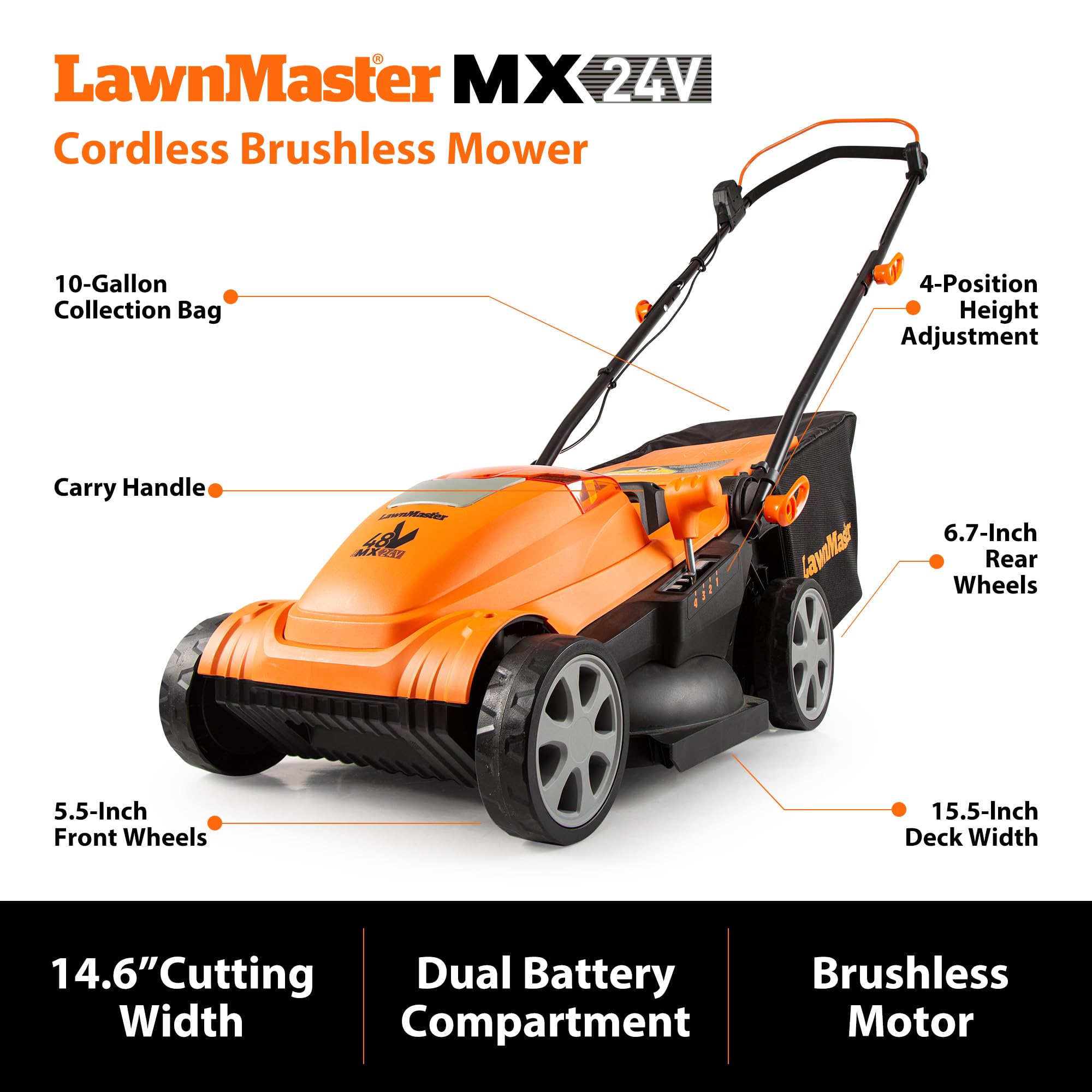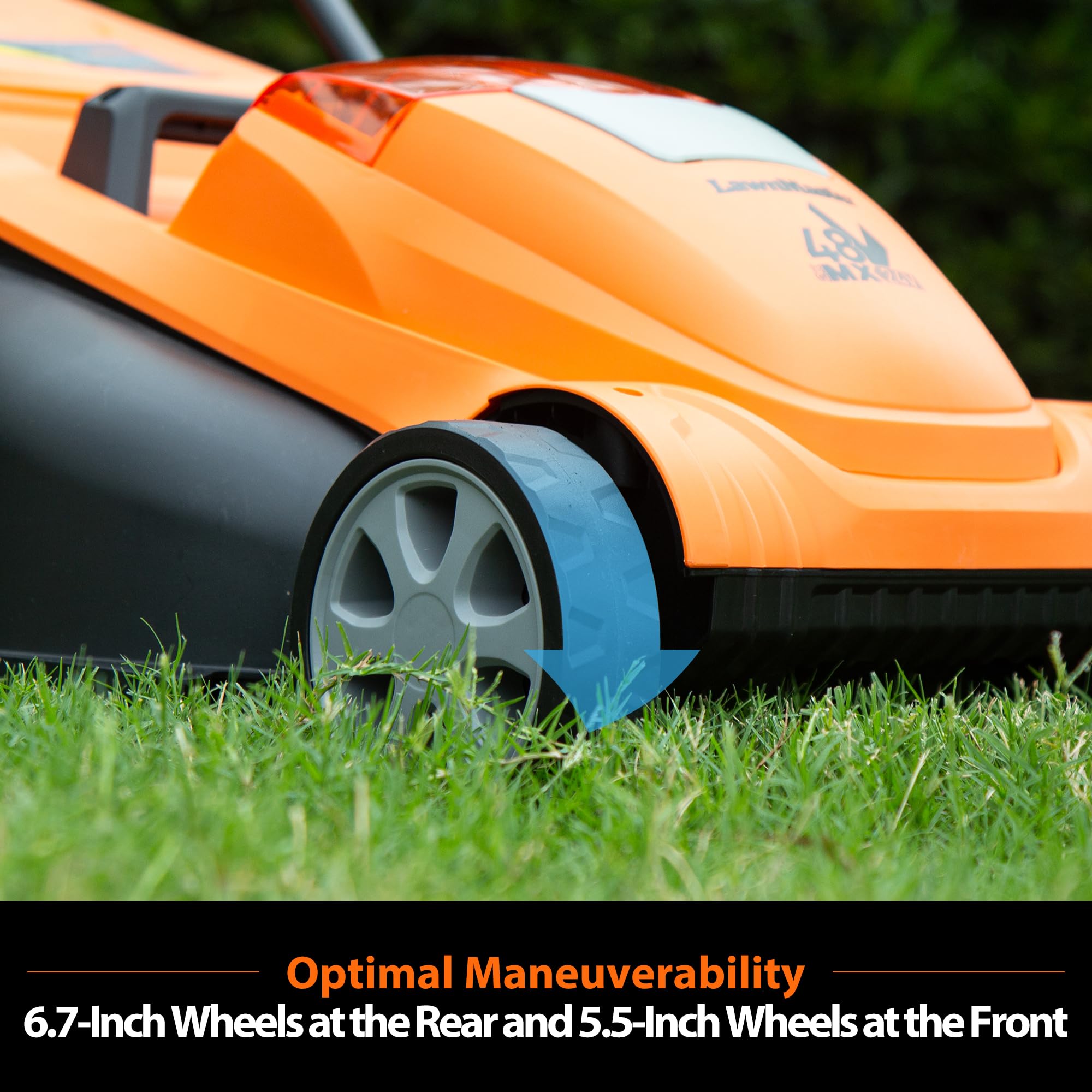 MAX MANEUVERABILITY: Features 15.5-inch deck width and 6.7-inch rear wheels for easy navigation around the lawn
