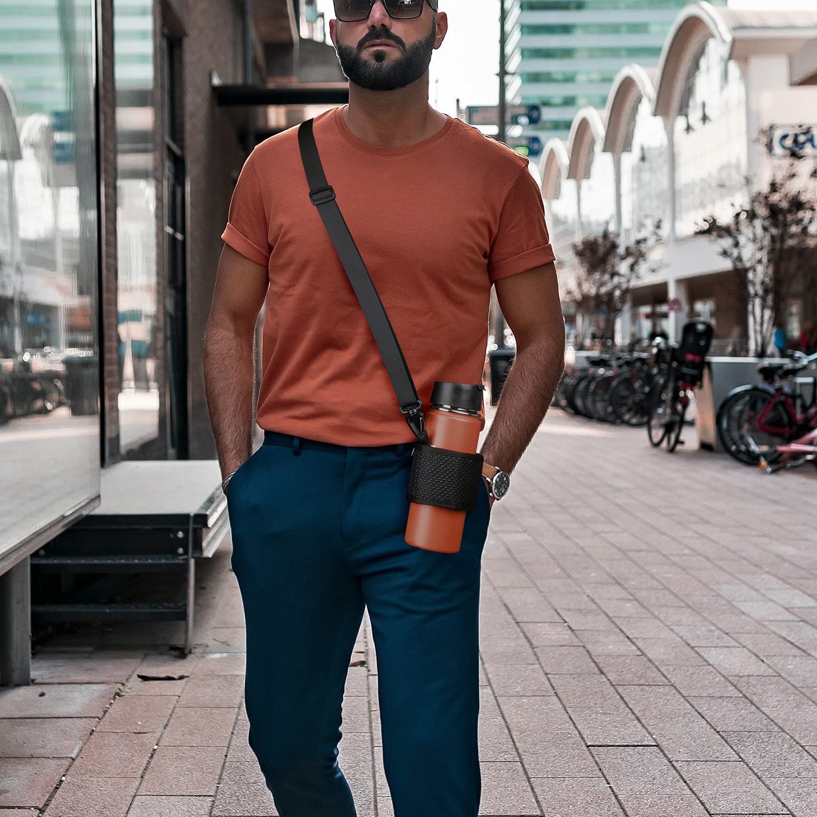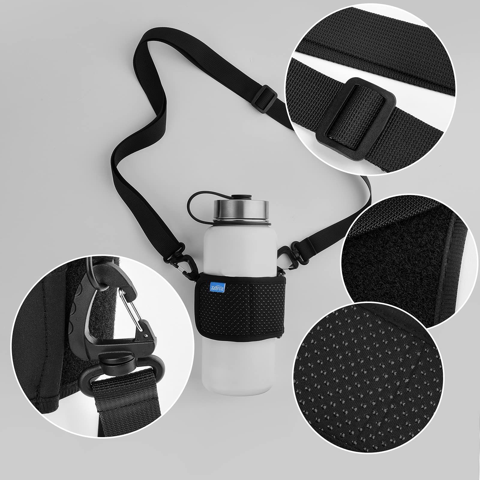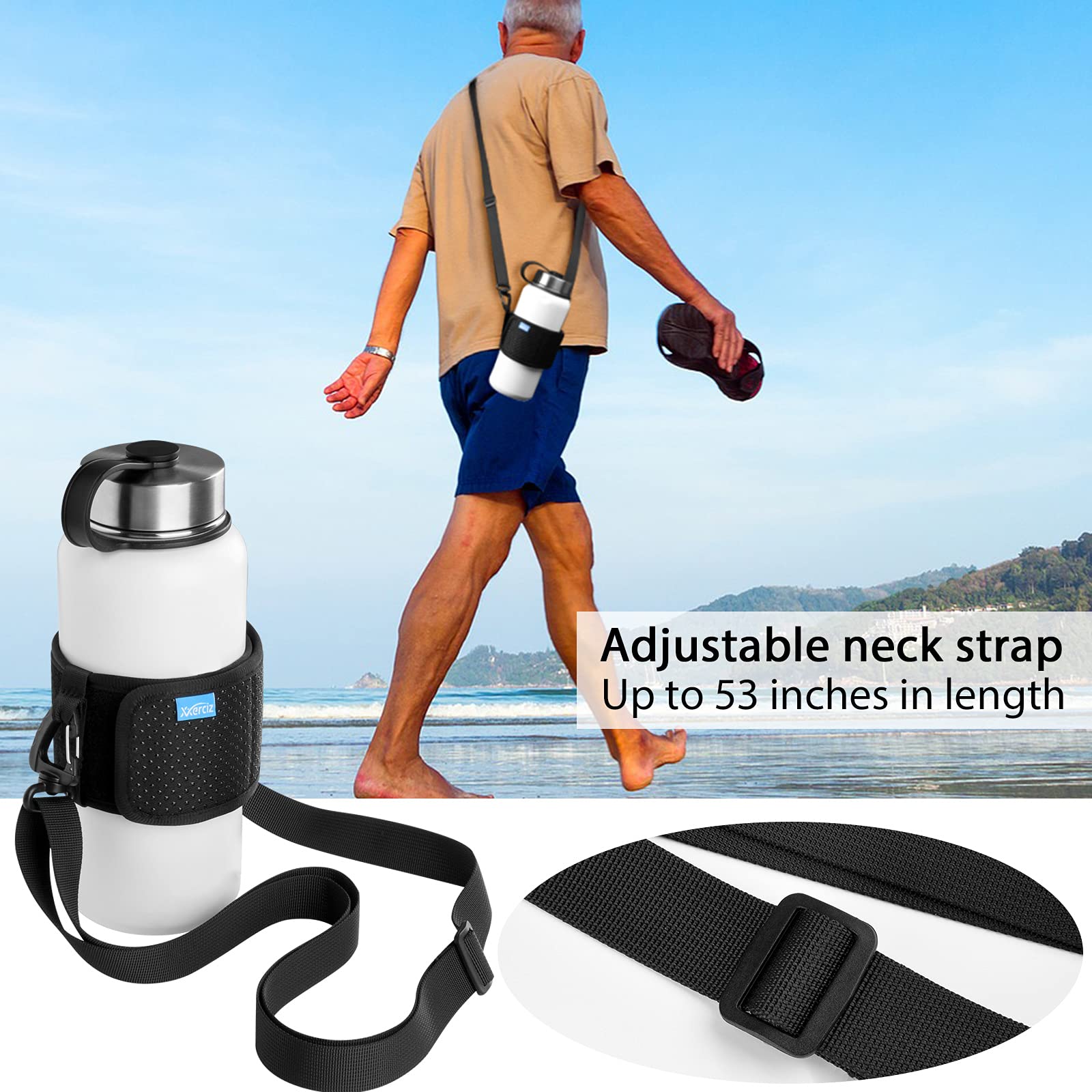 Water Bottle Carrier Holder with Adjustable Shoulder Strap Universal Bottle Sling for Walking Hiking Camping Universal Water Bottle Carrier Fit most stainless steel/glass/plastic bottles with a diameter of 2-4.5 inches. Anti-slip underneath will grip water bottle firmly and never fall out. Adjustable Shoulder Strap The strap adjusts from 20 inches to 53 inches in length, making the water bottle sling perfect for kids or adults. Water Bottle Carrier Water battle strap for carrying your drink bottle with you while keep your hands free. Your satisfaction is always our highest priority. If you don't feel 100% satisfied with our water bottle carrier, please Email us freely. We promise you a replacement or an immediate refund.