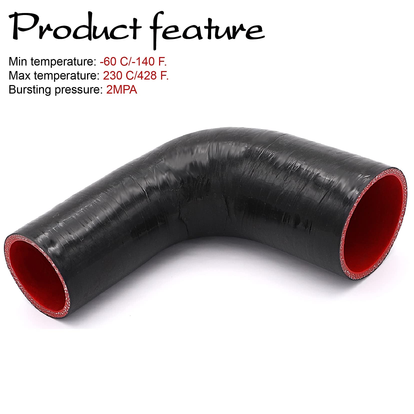 Silicone 4-Ply 90 degree silicone hose. Length: 102mm one leg. Thickness: 5mm. Size tolerance: +/- 0.5MM.
