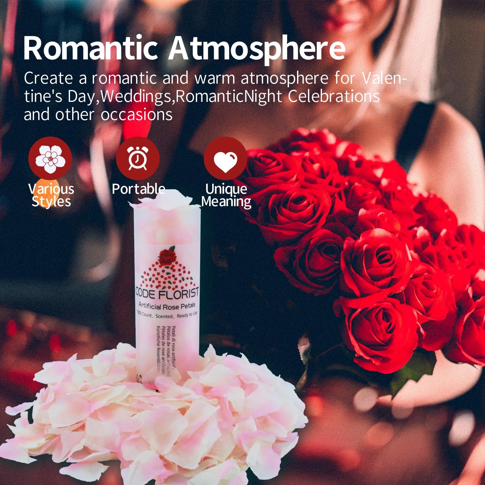 Widely Use: They are ideal decorations for romantic night for him or her.Also used for wedding flower girl petals,proposal decorations,flower aisle runner,or simply as red table decor.Buy more to use in larger events such as Valentine's Day,party,etc.