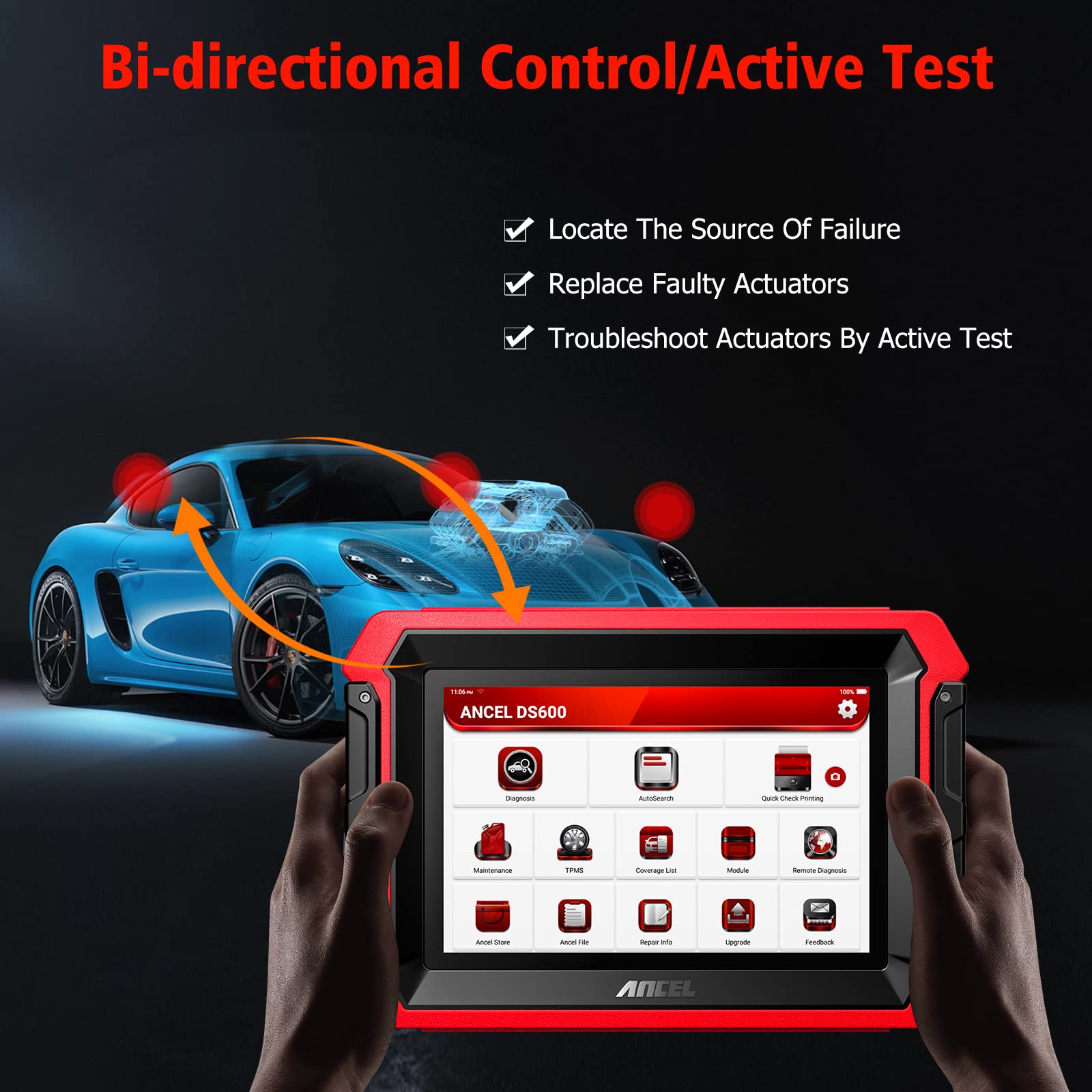 【Bi-directional Control/Active Test】ANCEL DS600 Plus car scanner can activate solenoids and actuators for active testing, and send commands to systems/components to test their working status without using vehicle control. Easily modify ECU and reveal hidden features for 99% of cars in the market. ECU replacement scanner helps match, learn, code, or even program the newly replaced ECUs on most vehicles.