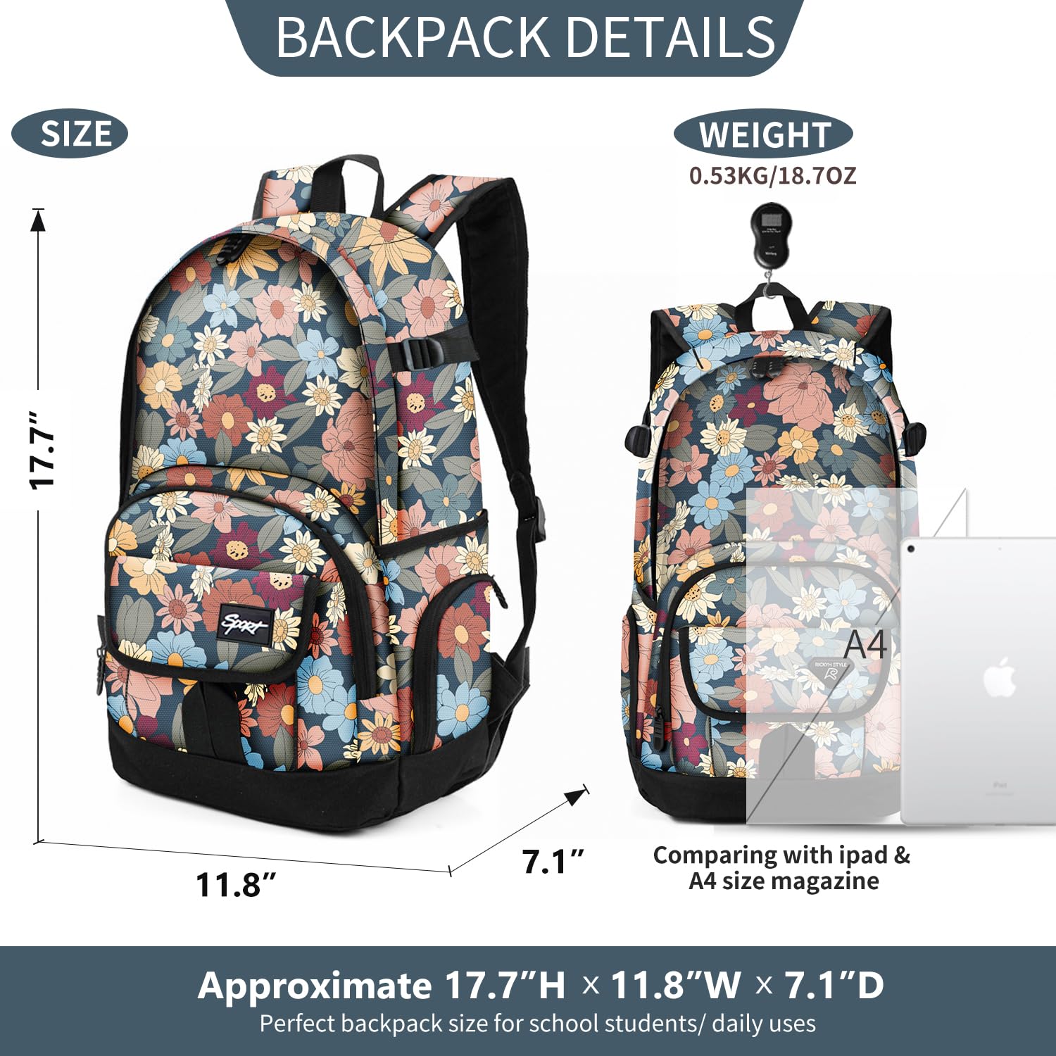 ✓ROOMY IN STYLE—Chic graffiti prints design with spacious main compartment holds up to 25L/20pounds