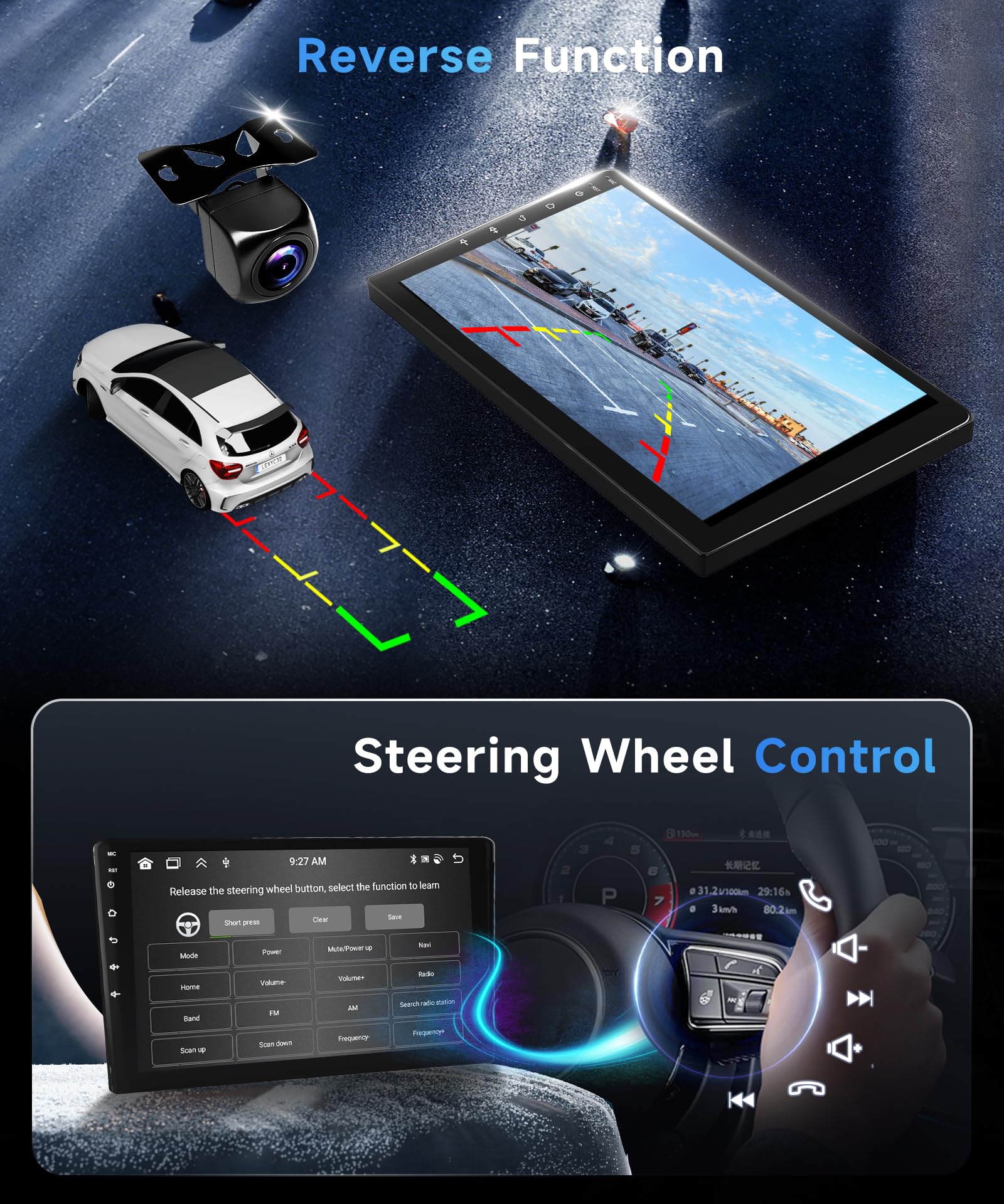 Rearview Camera Input and Steering Wheel Control: The 9 inch car display for radio 2014 Fortuner featuring a rearview camera input. When in reverse gear, the screen automatically switches to the reverse interface, ensuring safe and convenient maneuvering even in adverse weather conditions. Additionally, take advantage of steering wheel control for the car radio, enabling more convenient and safer operation while driving.