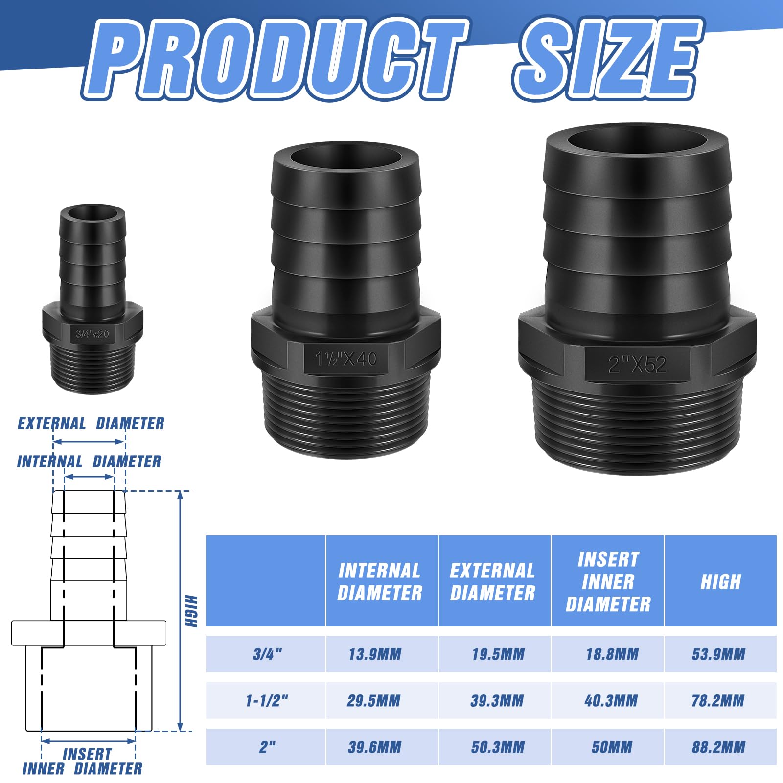Versatile Size Options: our PVC hose fittings have 3 different sizes, 3/4", 1-1/2", and 2", each size is designed to mate with pipes of the same dimensions ensuring an easy installation; Please select the correct size according to your needs