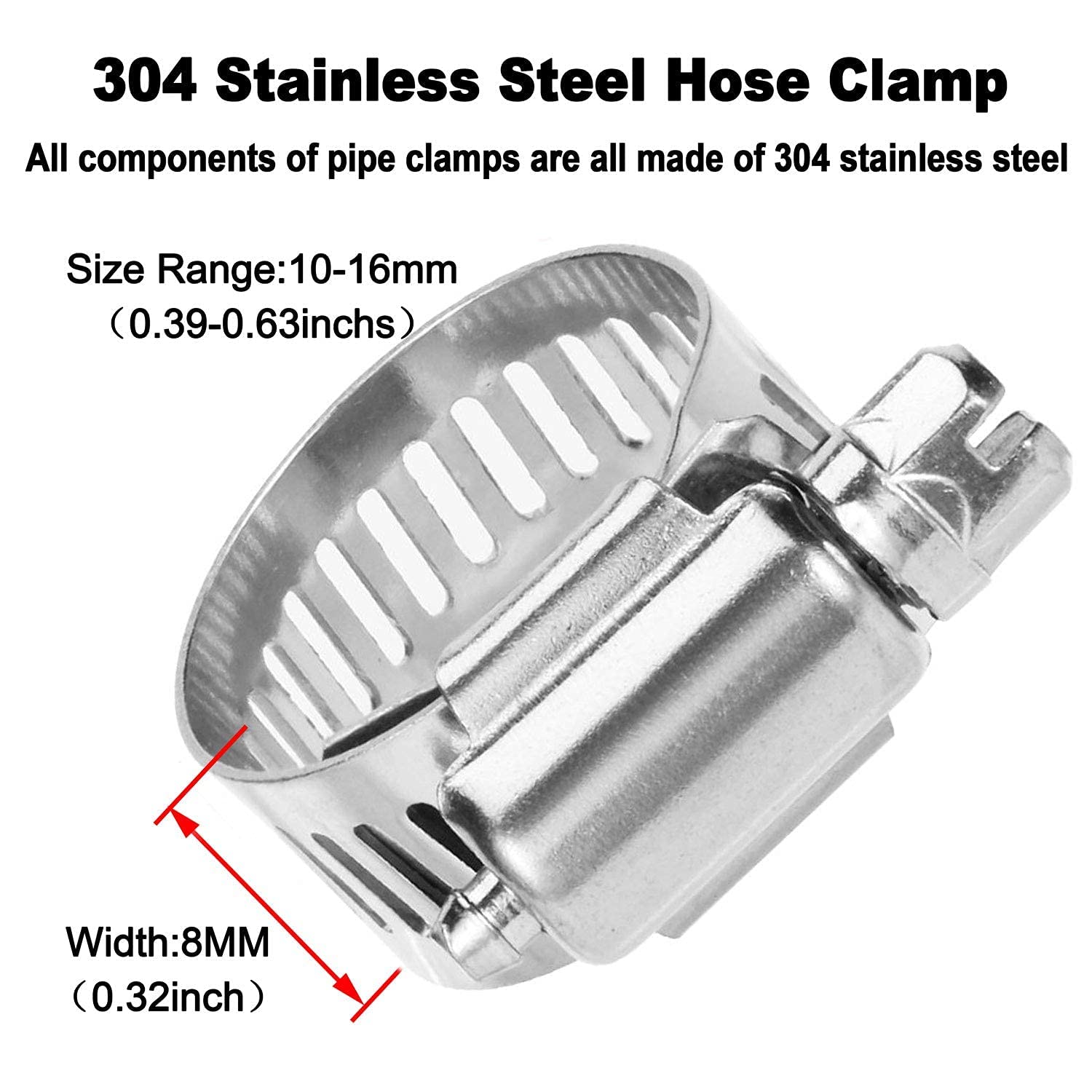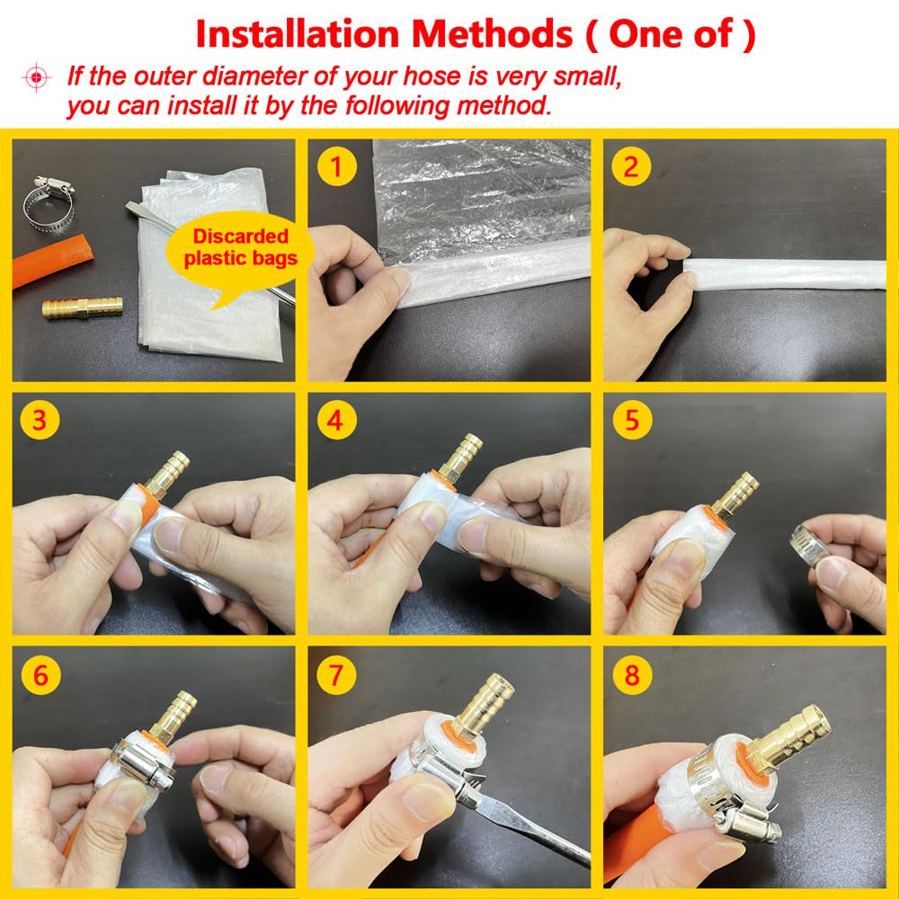 Solid Connections:The hose barb can be solid connected to the hose, The pipe clamps can create a tight seal on flexible or semi-rigid hose. This kit suitable for the hose witch inner diameter of 8mm(5/16 inch).