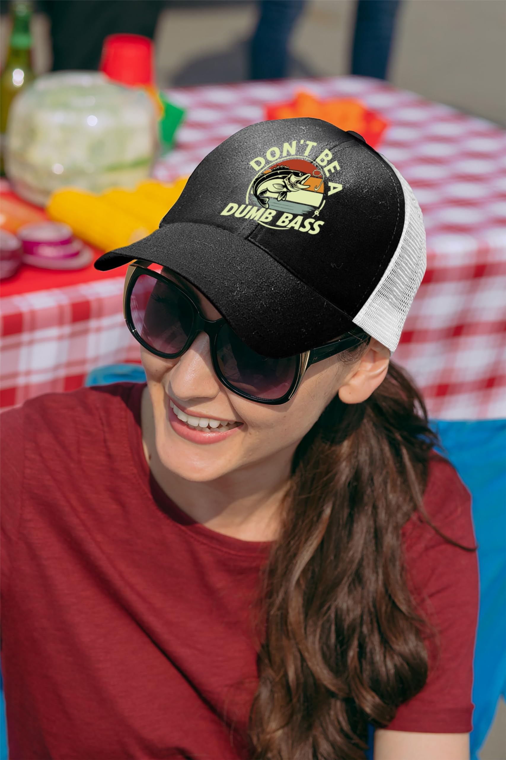 FUNNY FISHING TRUCKER HAT: This trucker cap features a vintage design that reads "Don't be a dumb bass," which makes it a great gift not just for men, grandpa, dad, husband but also anyone who loves fishing things retro.