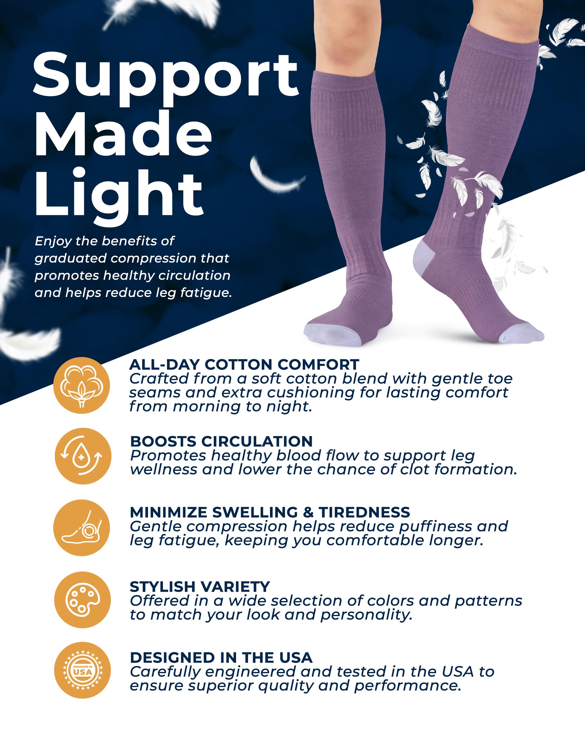 Soft Cotton Comfort - Made with breathable cotton, these knee women's and men's compression socks keep your legs cool and odor-free even during the most active parts of your day. The smooth toe seams are gentle on sensitive skin, making these socks ideal for all-day wear.
