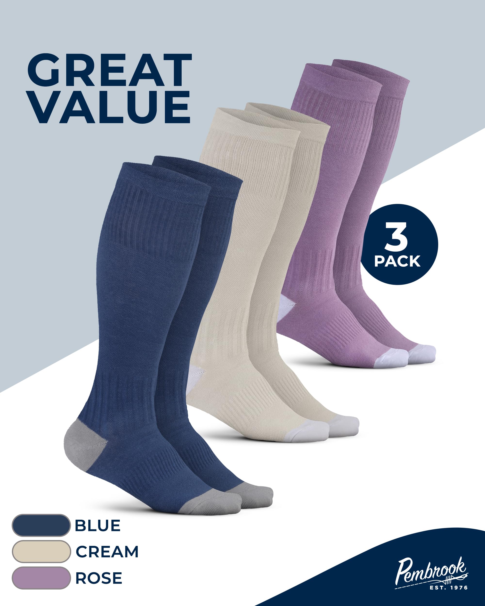 Description Pembrook Cotton Light Compression Socks for Women & Men - 3 Pairs | 8-15 mmHg Comfort Compression Socks for Men & Women