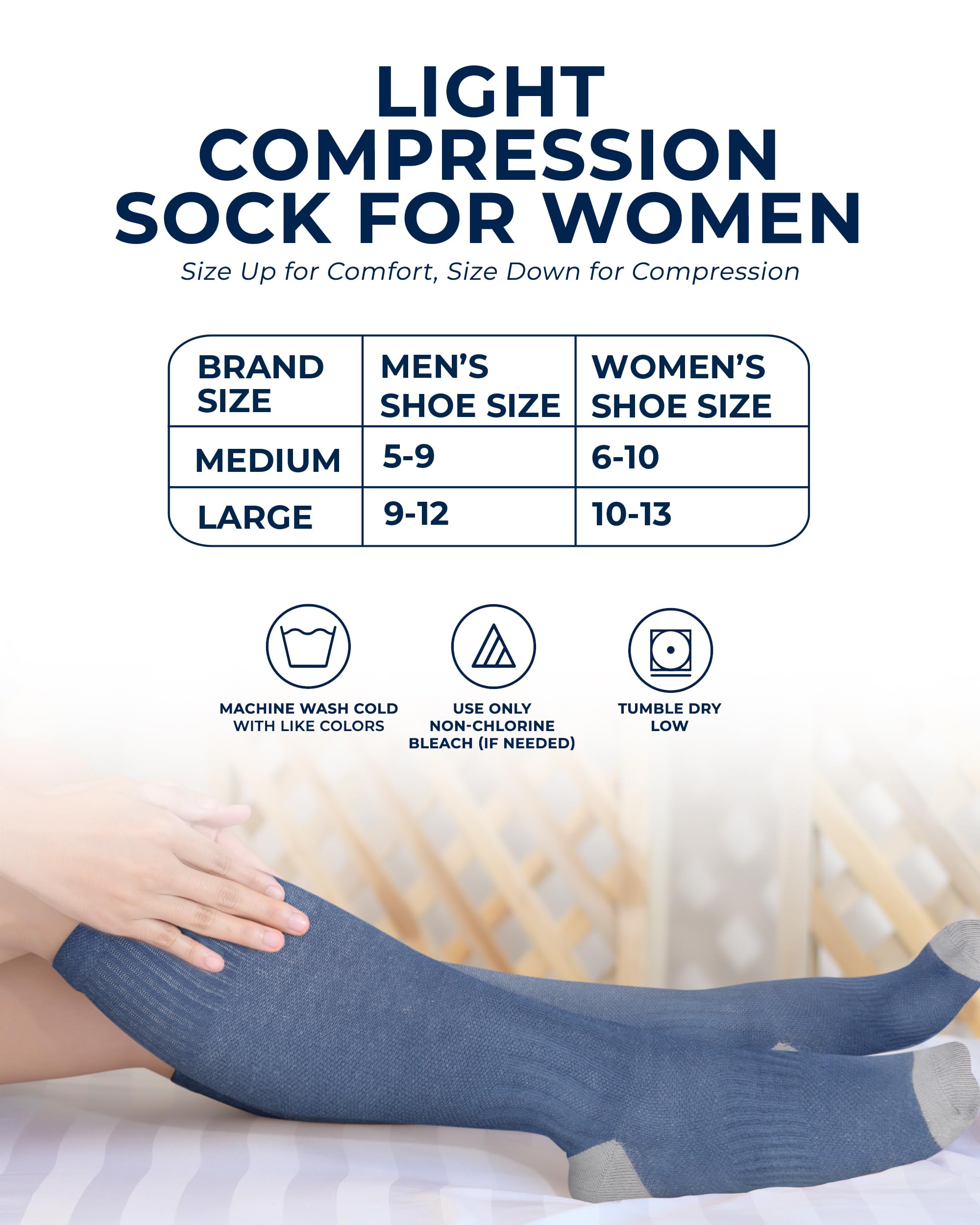 Everyday Support in Motion - Designed for lasting comfort, these low compression socks offer the perfect balance of support and flexibility whether you’re walking, exercising, traveling, or simply relaxing. Great for those managing edema, varicose veins, or restless leg syndrome.