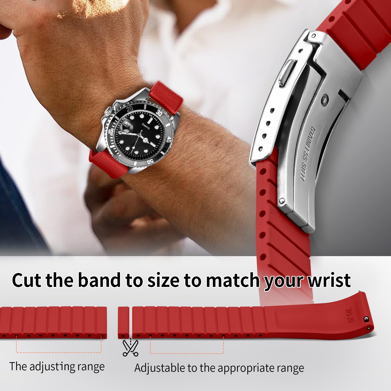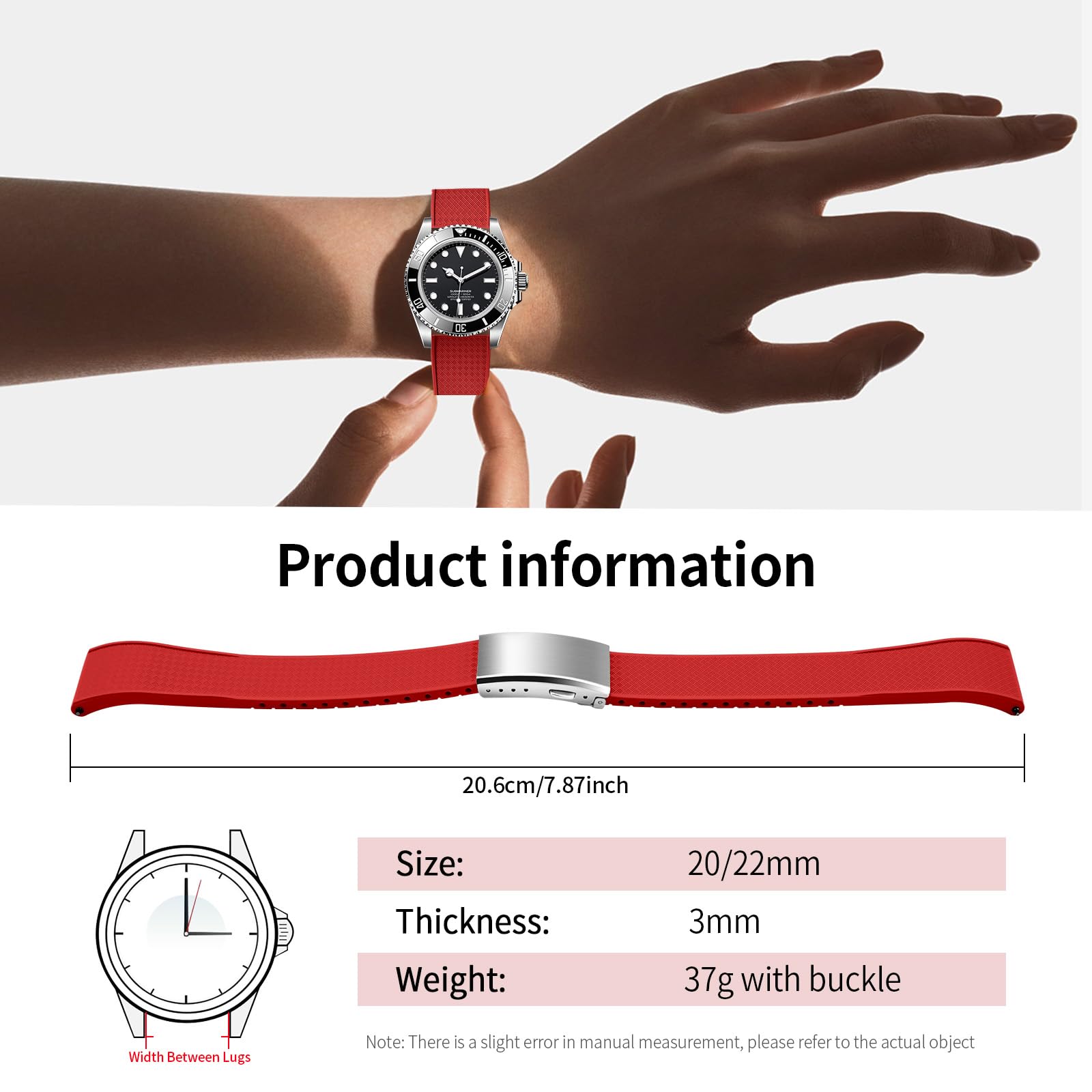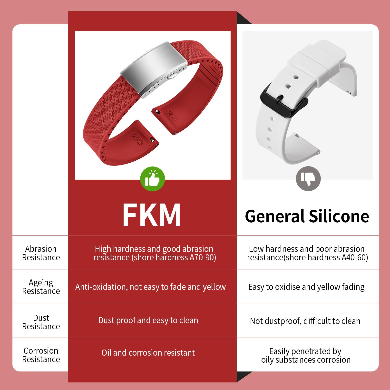 Scope of Application: The FKM Fluororubber Watch Band is soft, breathable, durable, waterproof. Fluororubber watch band that is stylish enough for the office and durable enough for the gym, hiking, running, swimming, diving and much more. Ideal watch strap for any diver watch enthousiast