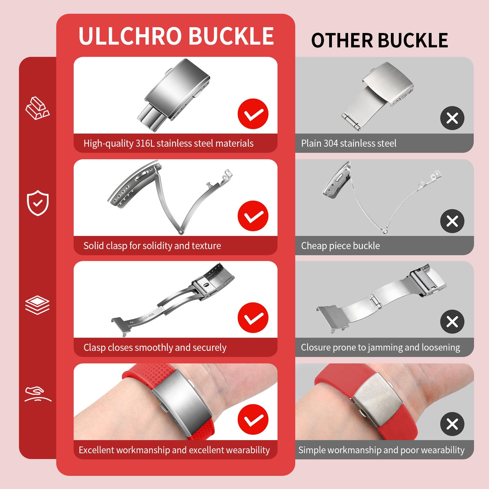 High Quality Material: Made of genuine Fluororubber FKM. It has higher density than traditional rubber or silicone watch band on the market, is softer, more skin friendly, waterproof, durable, dust-free and can be bent at will