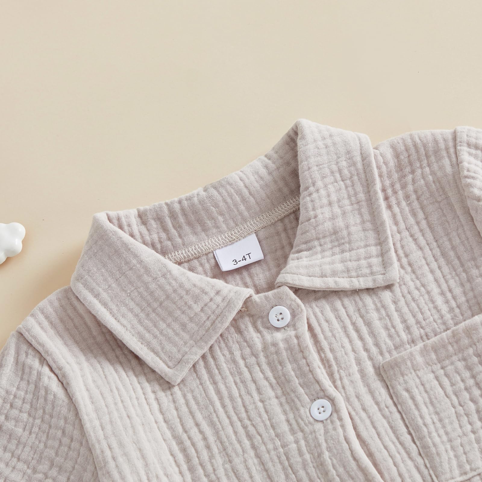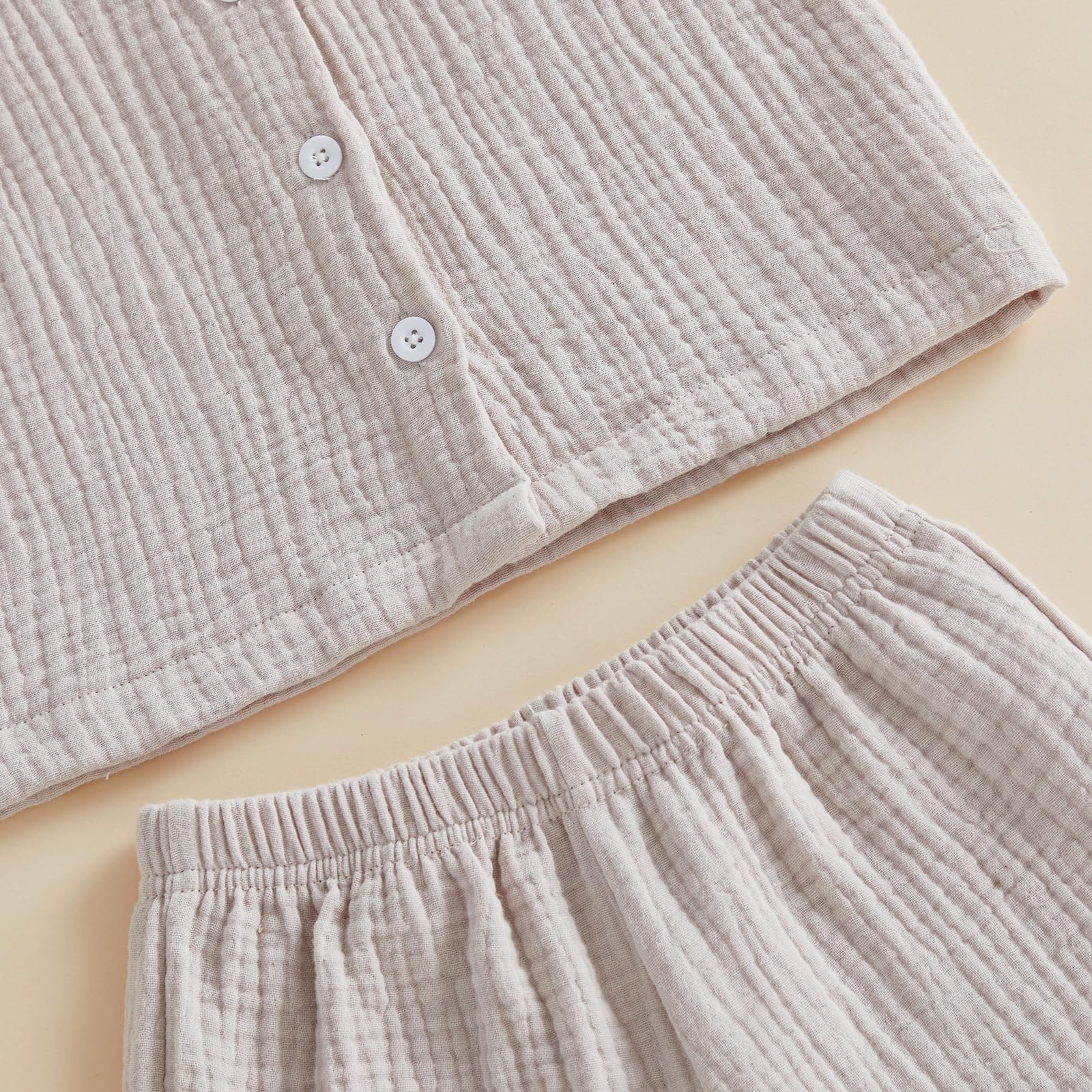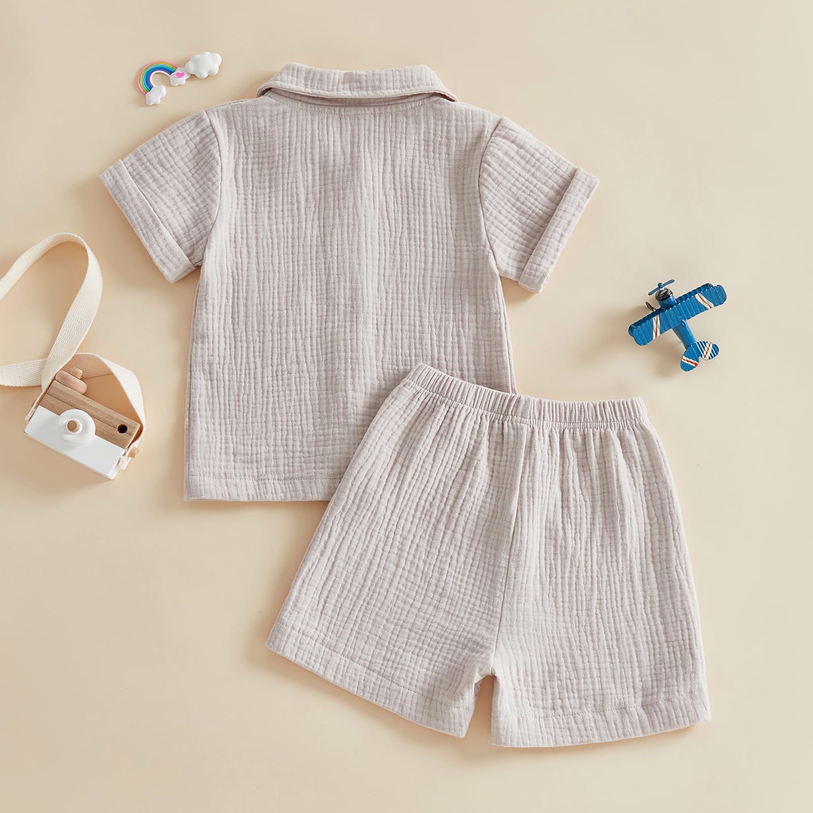 FEATURE - This button down shirts set is short sleeve, lapel neck, buttons, pockets, solid color, elastic waist and 2pcs set.