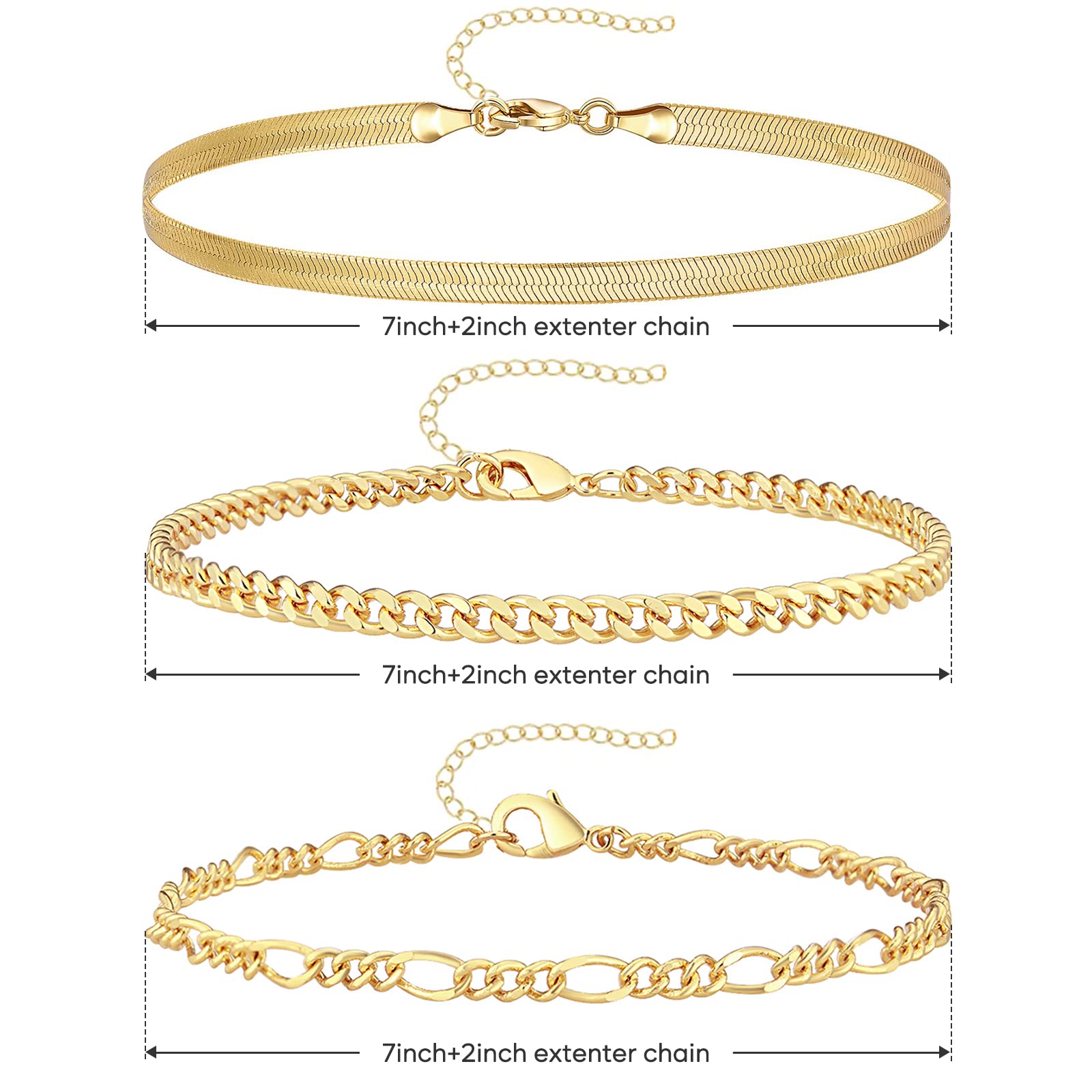 Adjustable bracelets:This gold bracelets set for women are available in 7inch+2inch adjustable chain, and that is good to wear under a hoodie or with a tee and is super cute! It’s perfect to stack with another gold bracelets as well