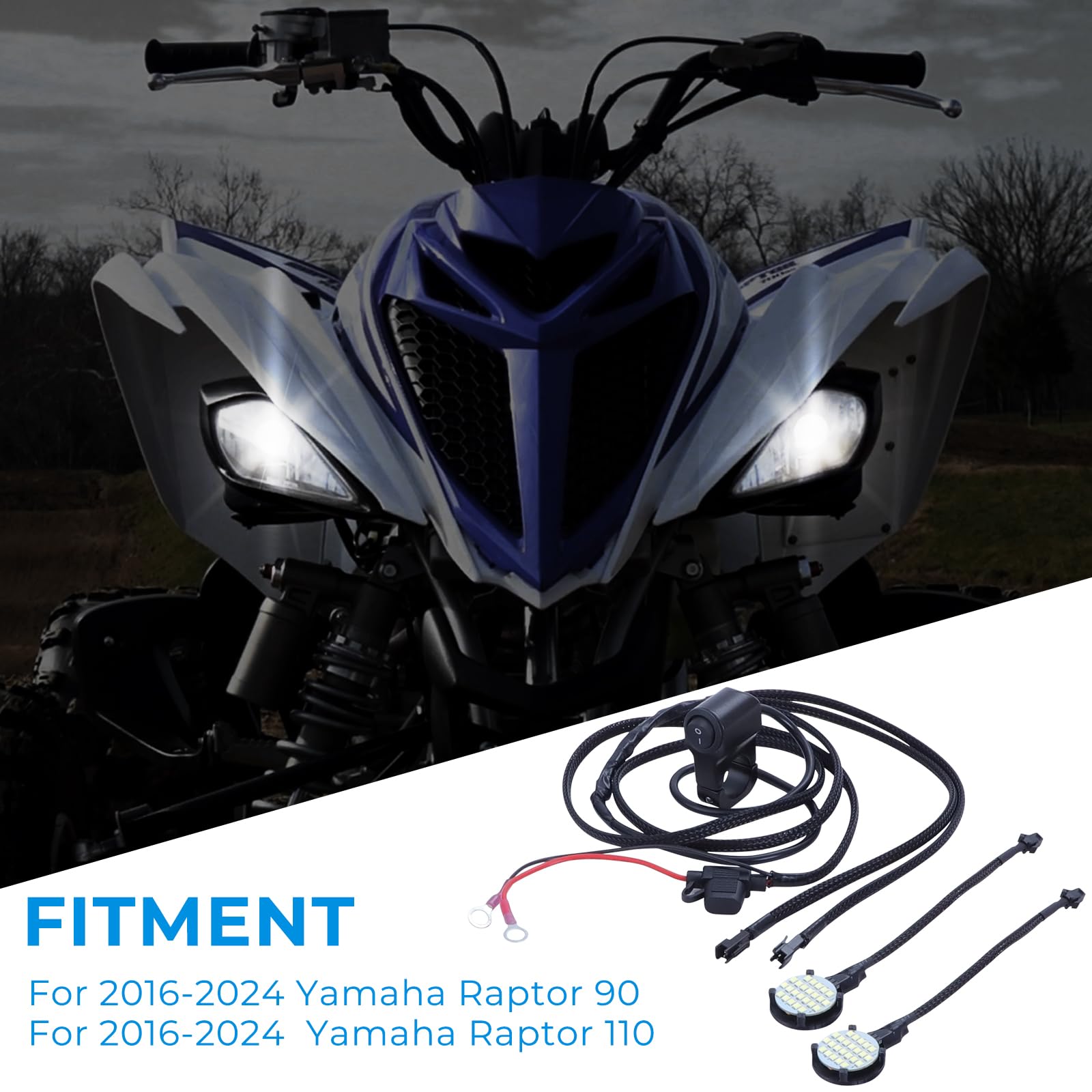 【Fitment】This high-quality LED headlight kit designed for Yamaha RAPTOR 90 RAPTOR 110(2016-2024).