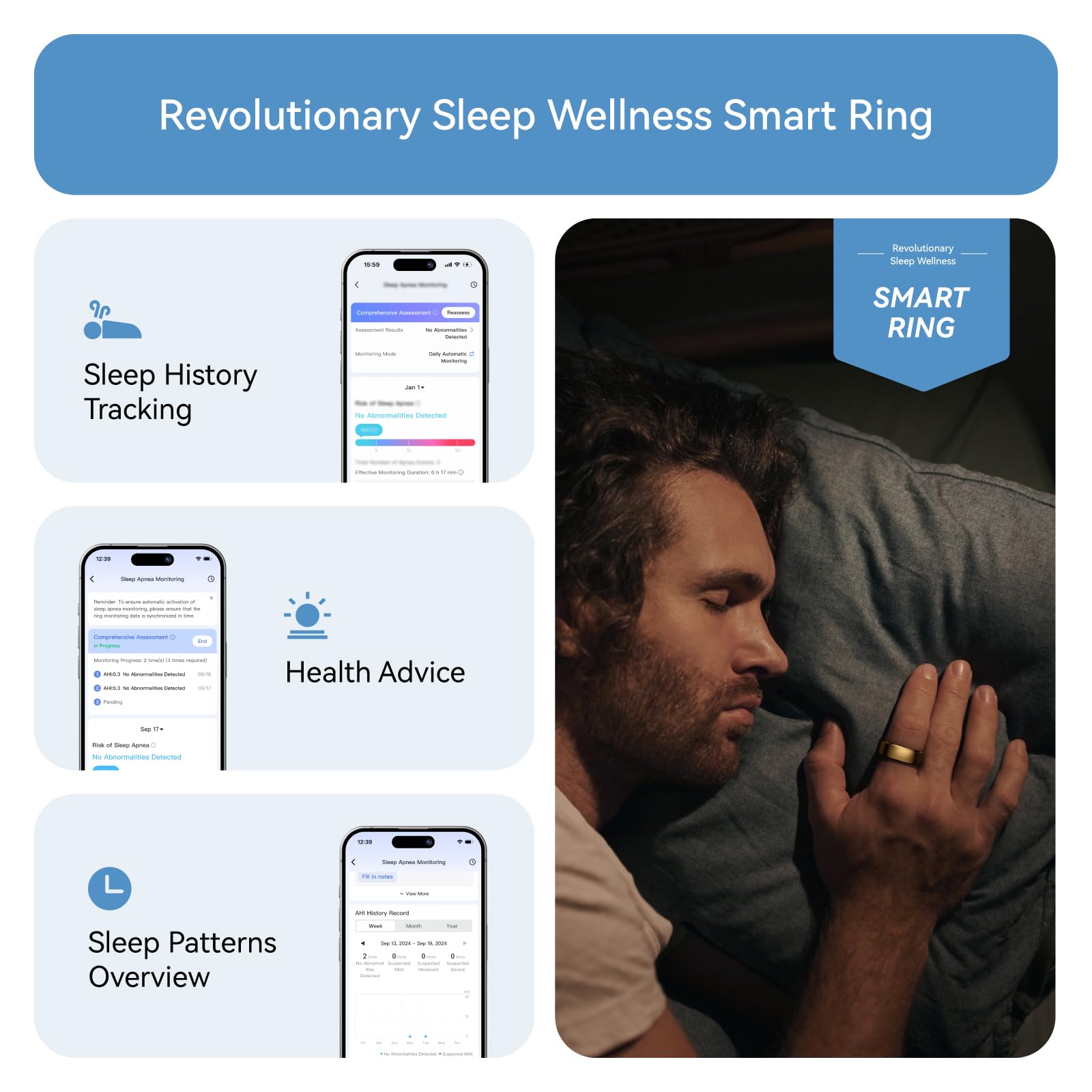 [Sleep Apnea Monitoring] RingConn Gen 2 Smart Ring supports sleep health with advanced technology. Developed with leading universities and hospitals, this AI-powered ring accurately tracks sleep apnea. Unlike traditional devices, it's lightweight and comfortable, offering multi-day monitoring with real-time AHI data and personalized insights via a dedicated app for easy sleep health management