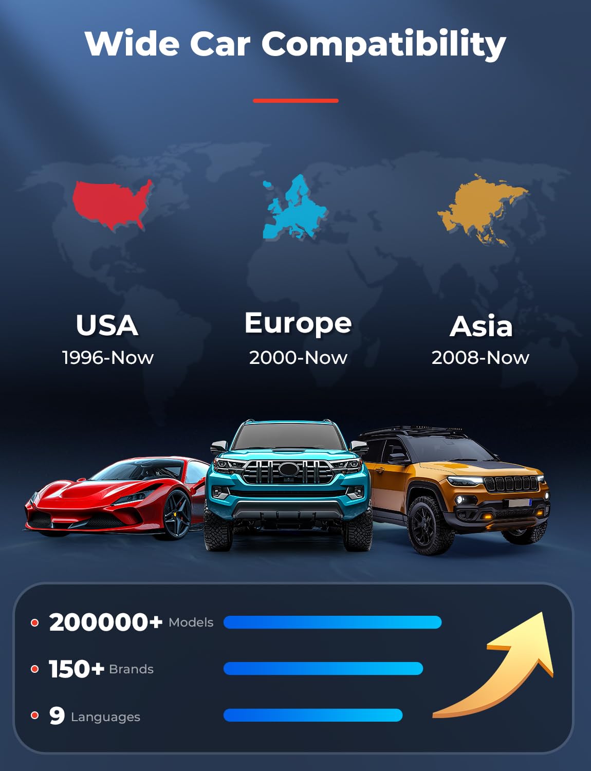 One App, All Devices - Tired of Third-party App Hassles? Fed up with downloading separate apps for different cars, paying extra for limited features, or being stuck with just Android or iOS? Our wireless Bluetooth OBD2 scanner solves it all! Simply plug the code reader into your vehicle's OBD2 port, connect via Bluetooth to iOS or Android, and turn your smartphone into a powerful mobile diagnostic tool. No cables, no restrictions—get real-time data on your car's performance from a distance, whether you're checking on it in the driveway or across the parking lot. All-in-one Solution, Zero Hidden Fees.