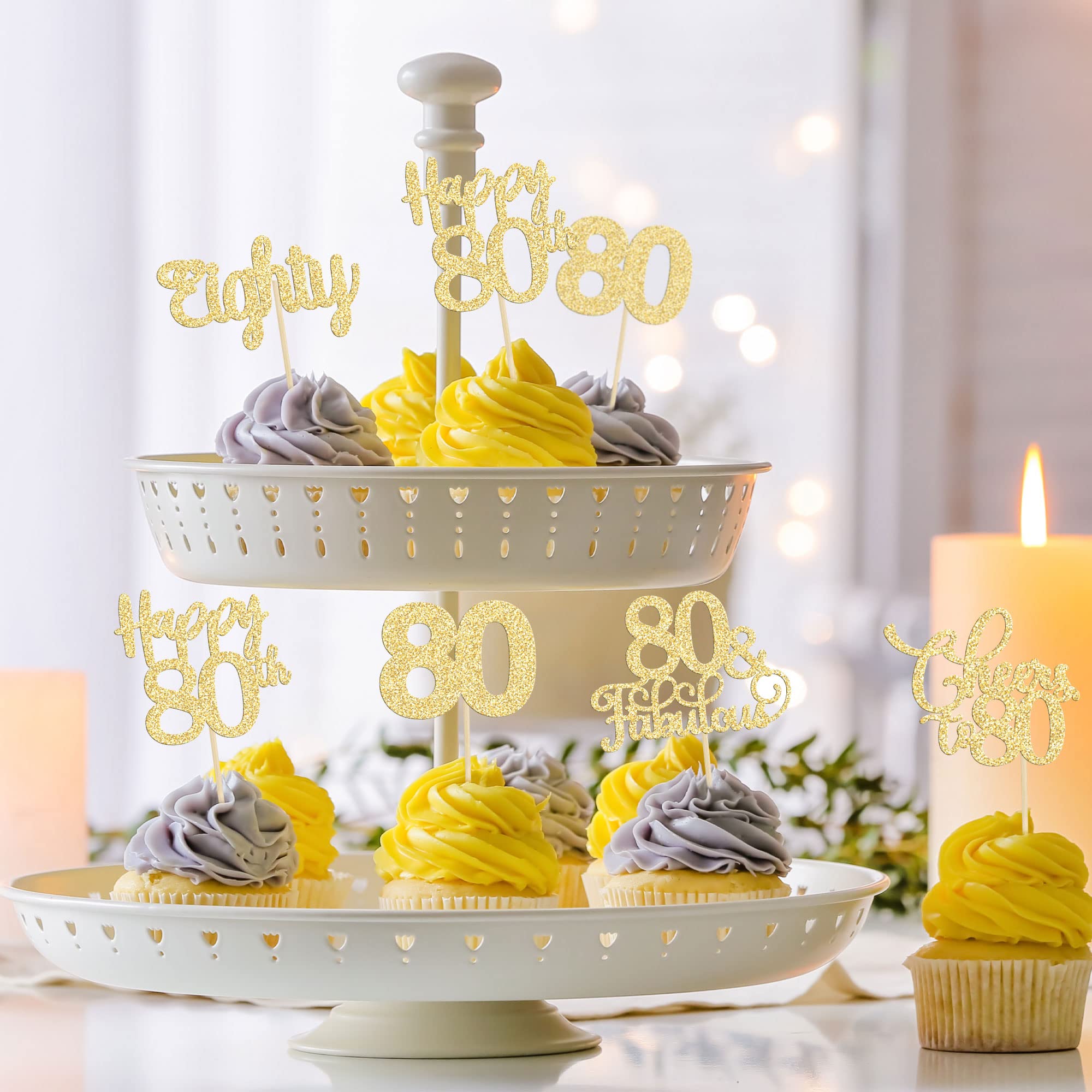 💖【Package Included】: 30Pcs 80th Birthday Cupcake Toppers. These 80th Birthday Cupcake Toppers are very nice and enough quantity for your use. Perfect for 80th birthday party!