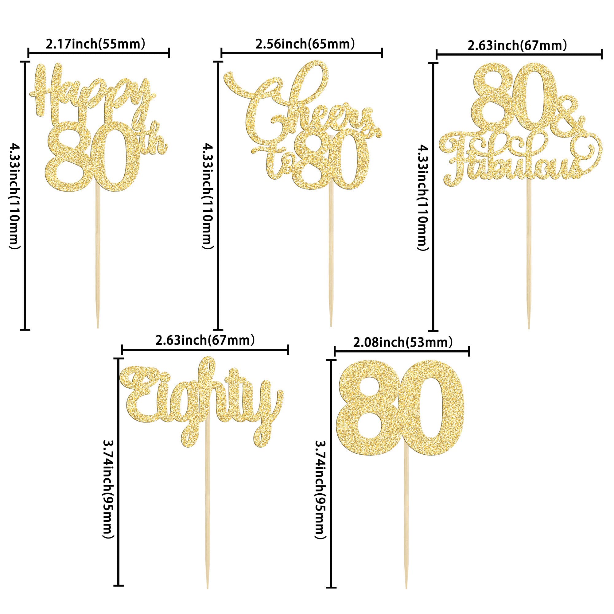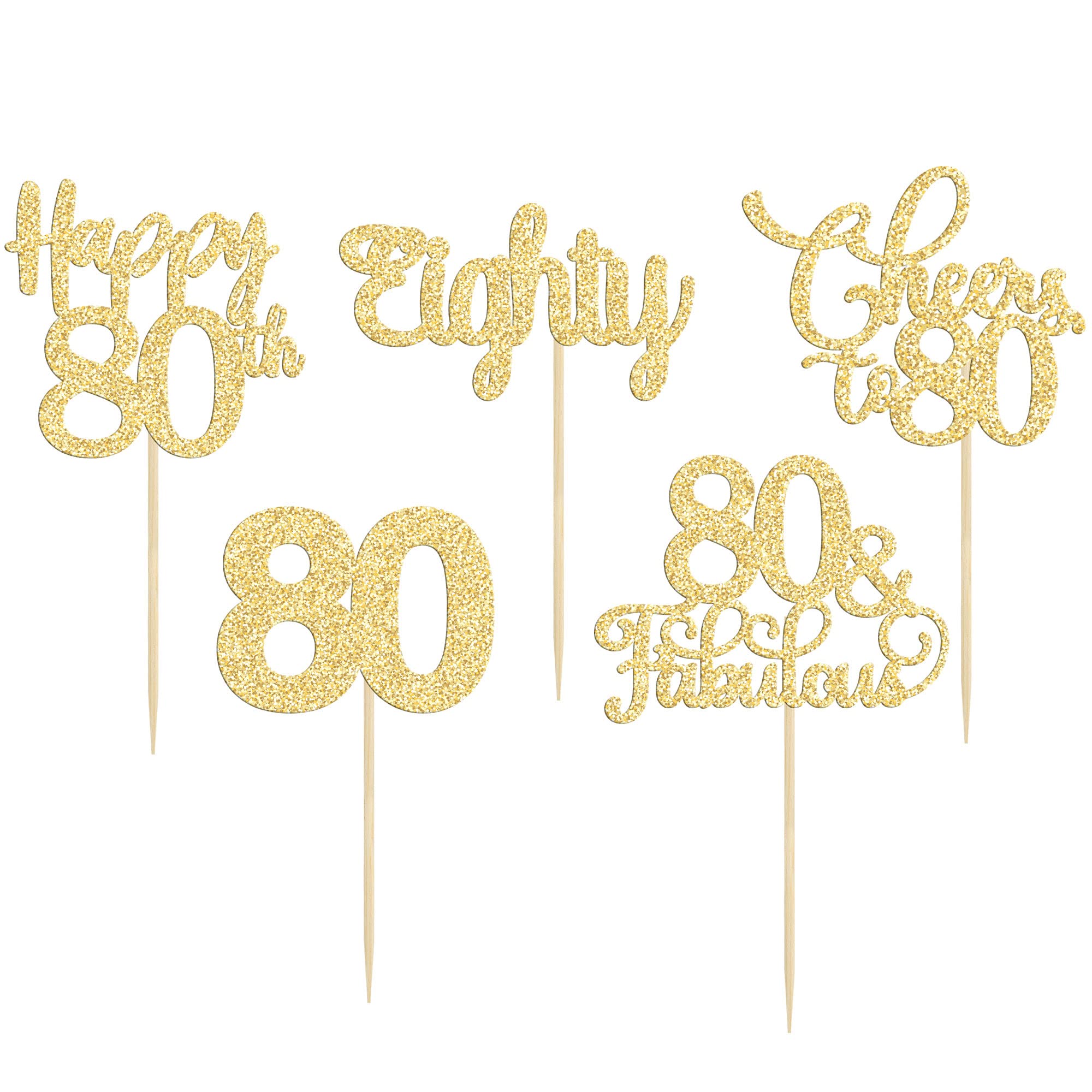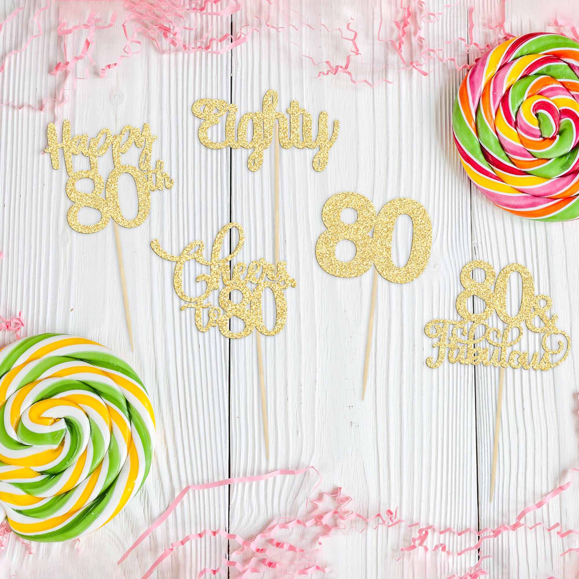 💖【100% Satisfaction Guarantee】Super value suit cupcake toppers for you, just take them to decorate your 80th Birthday theme party! Our highest priority is your satisfaction. These cupcake toppers are not and intended for decoration only, please do not use it in the oven or microwave.